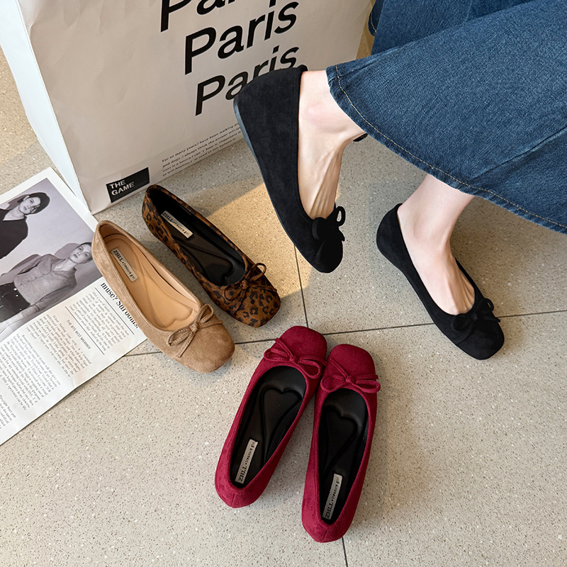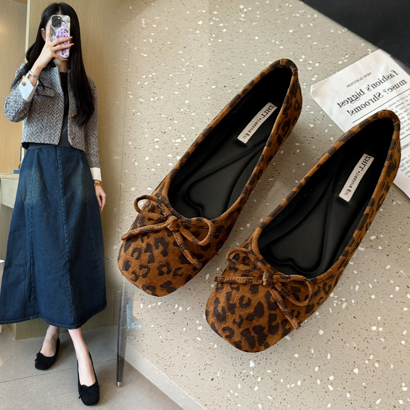 039-1 Leopard Print Suede Flats Shoes, Inner Height Increasing Women's Shoes, Zodiac Year Small Red Shoes, Wide Fat Feet, Large Size Women's Shoes