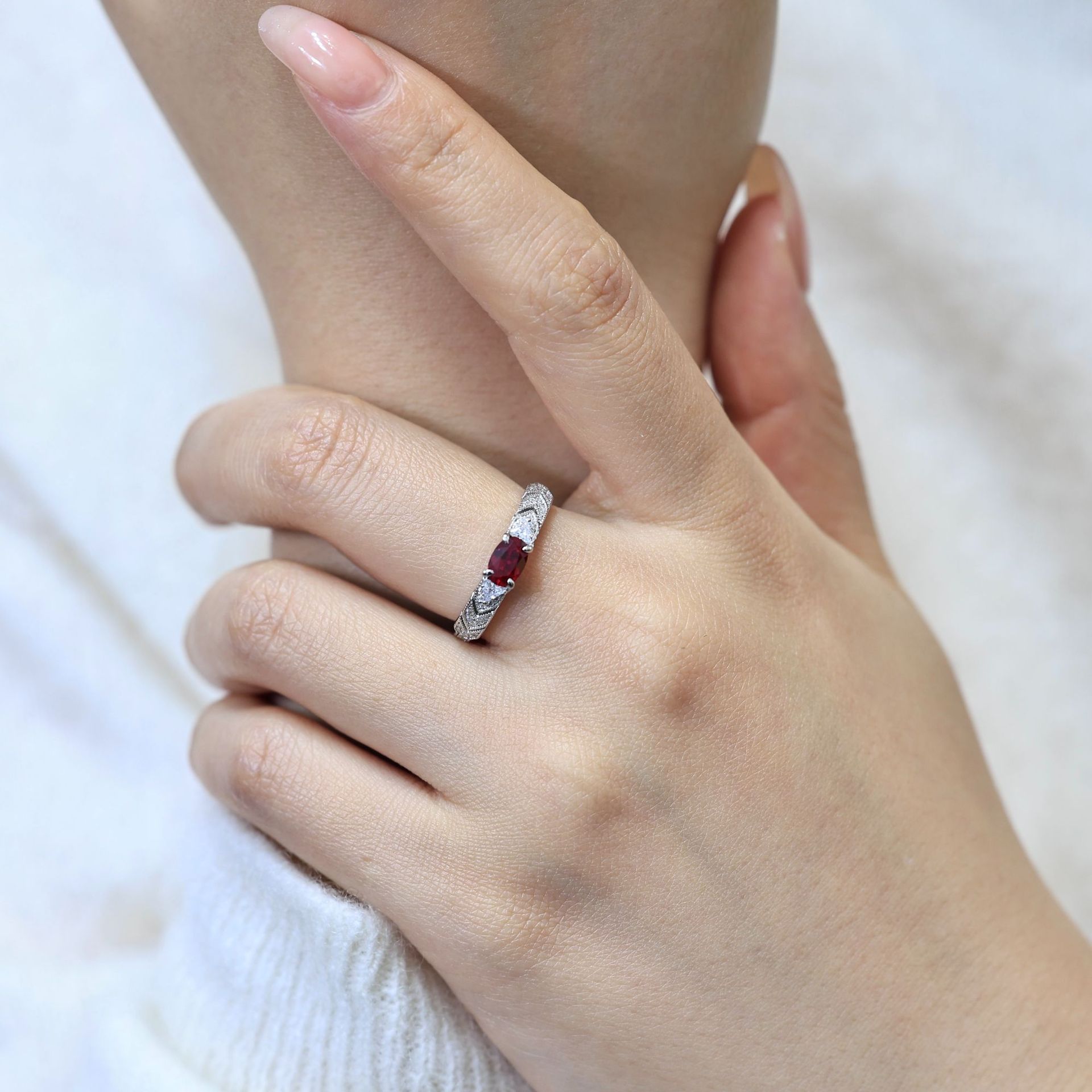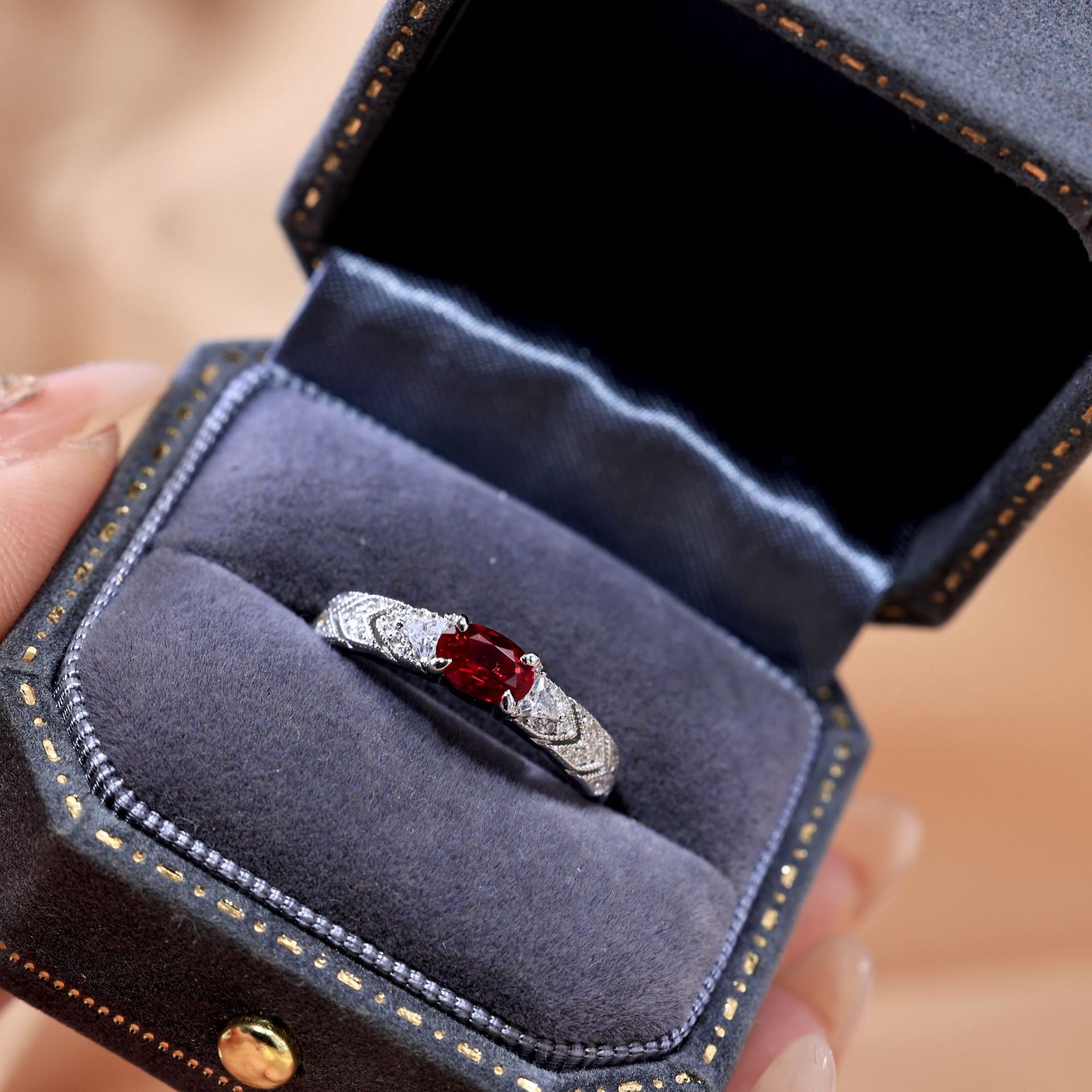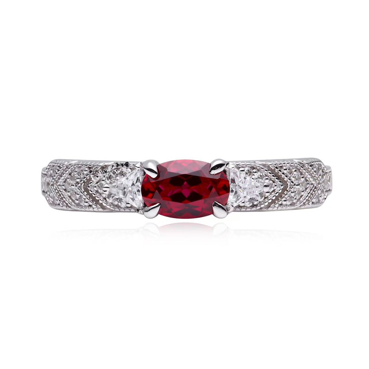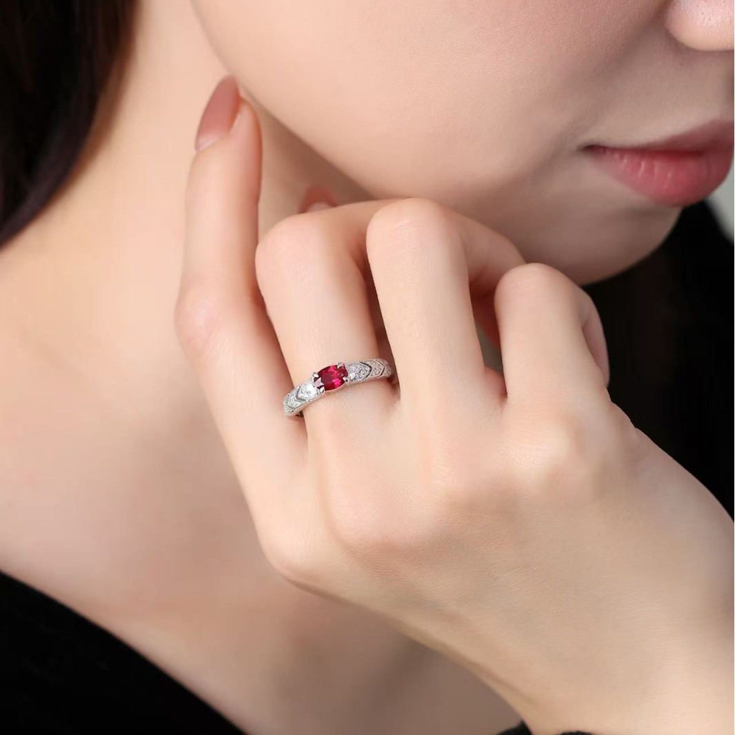 0.6ct Cultivated Ruby Lace Simple Ring Temperament Engagement Ring for Women s925 Sterling Silver Commuter All-match