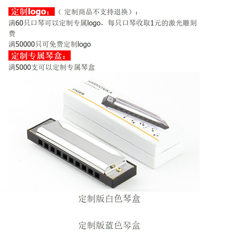10-hole C- tune Blues Harmonica Beginner 10-hole Harmonica Children's Toy Harmonica Instrument Laser logo Blues