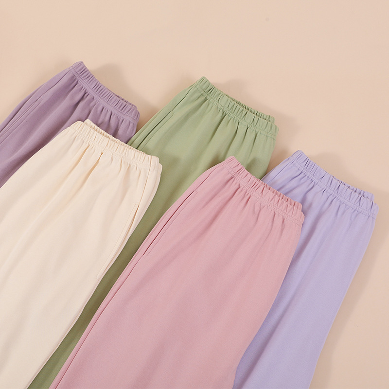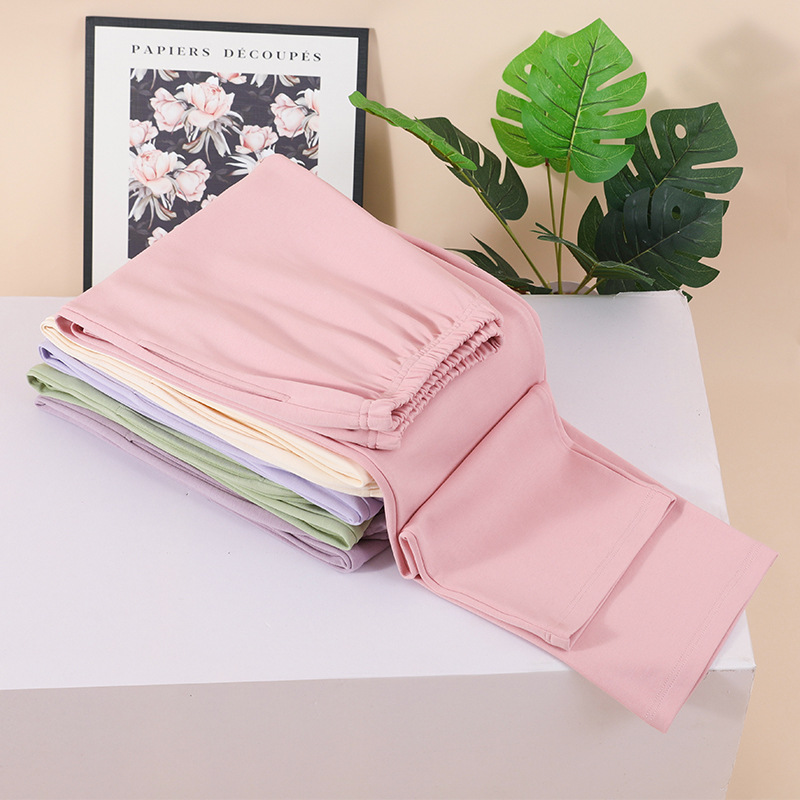 [100% Cotton] Single Pajama Pants Women's Spring and Autumn Cotton Thin Simple Solid Color Middle Waist Loose Straight Pants
