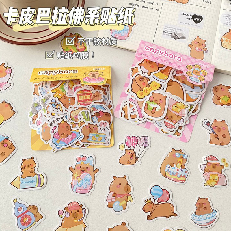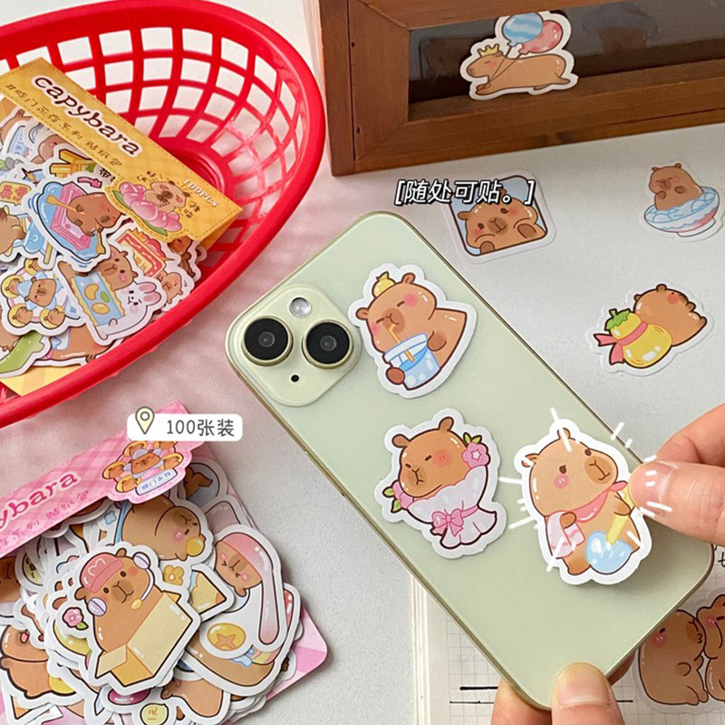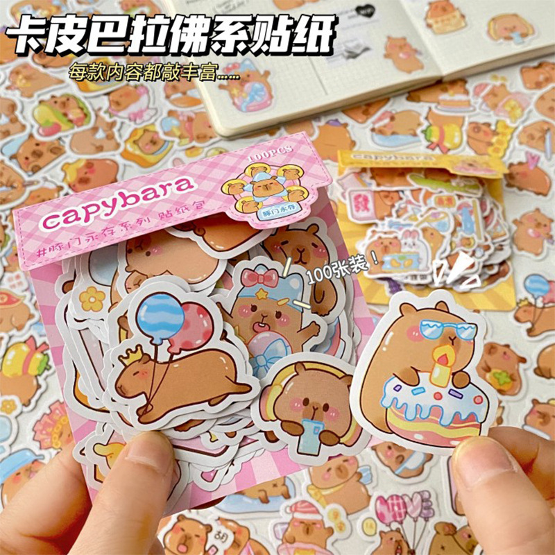 100 stickers cartoon hand account stickers cute capybara stickers kappibala phone case diy decorative stickers wholesale