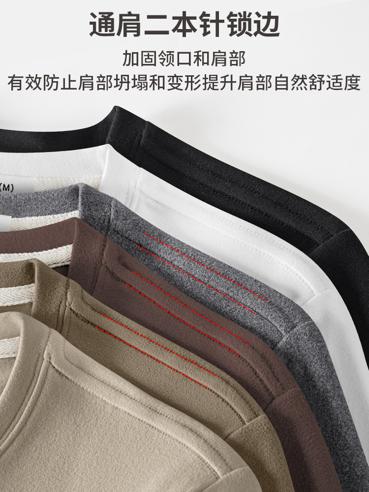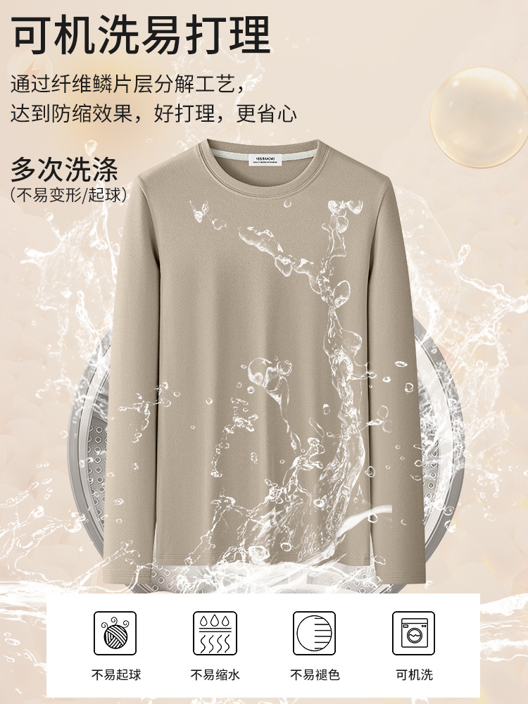 10A Antibacterial German Velvet Round Neck Base Layer Shirt for Young Men, Thick and Warm Fleece-Lined Long-Sleeve T-Shirt for Autumn and Winter
