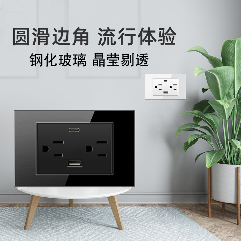 110V Taiwan Socket USB with Type-C American Standard 15A Wall Power Switch Panel American Standard Six-Hole Charging Plug