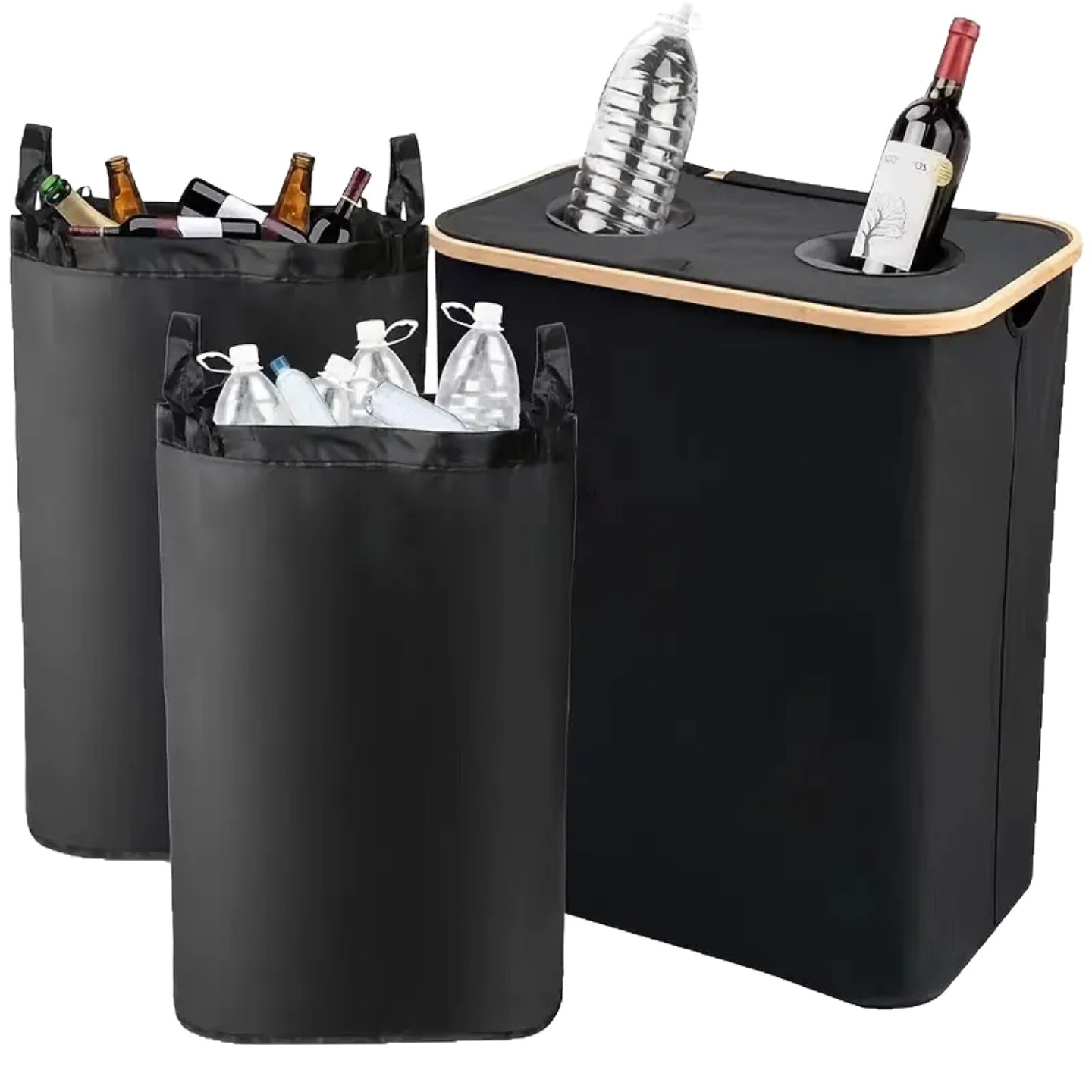 140L Dual Recycling Bin with 2 Removable Inner Bags and Lid, Kitchen Waste Bottle Storage Box, Dustproof and Moisture-Proof