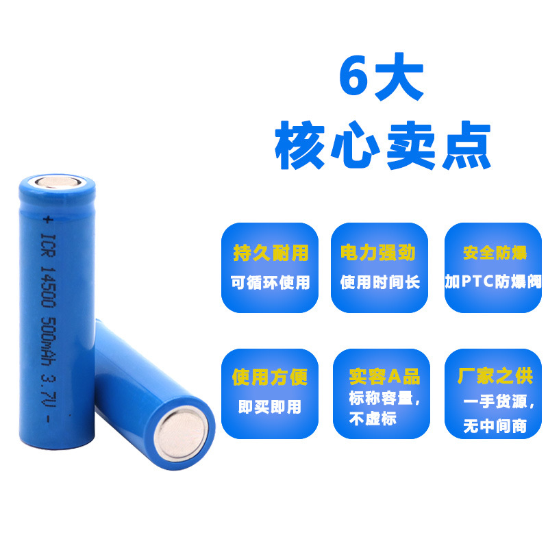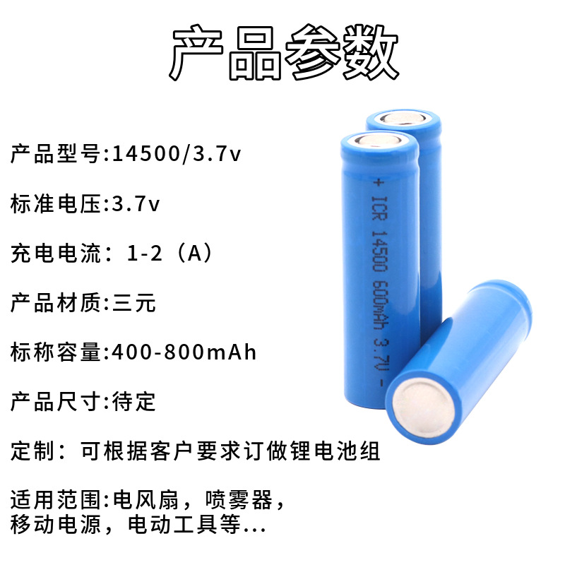 14500 Lithium battery 3.7V wireless mouse electric toothbrush Bluetooth speaker toy 500 rechargeable battery