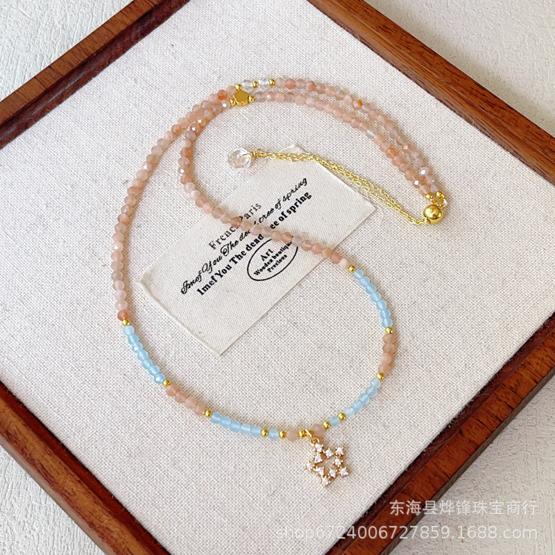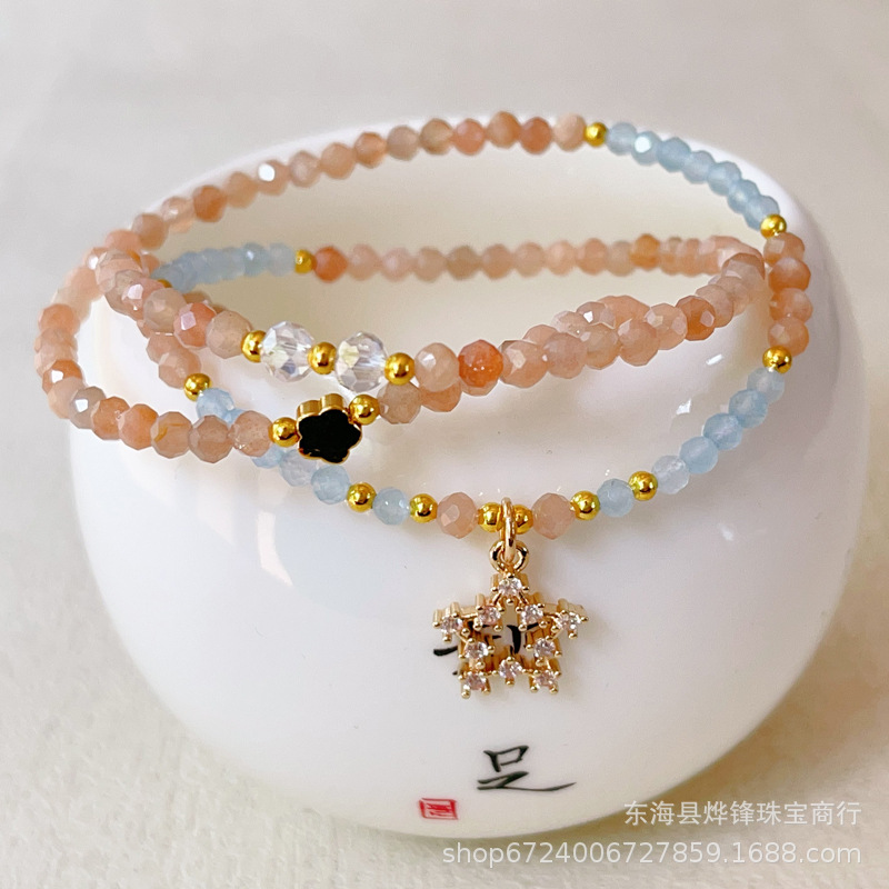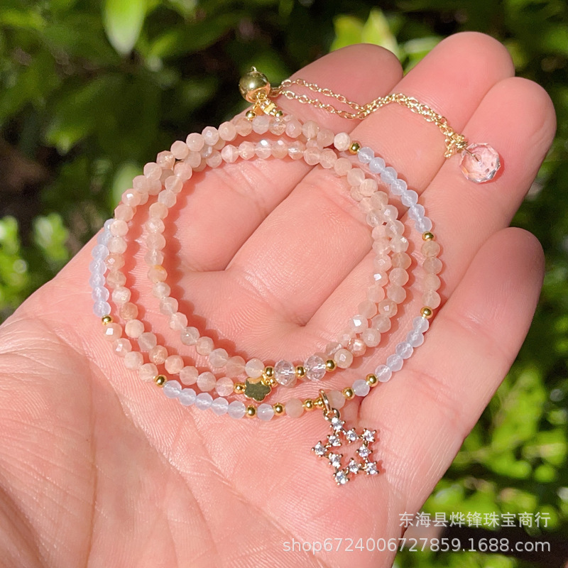 14K Gold-Filled Natural Colored Moonlight Orange Sunstone Aquamarine Faceted Three-Circle Bracelet Jewelry
