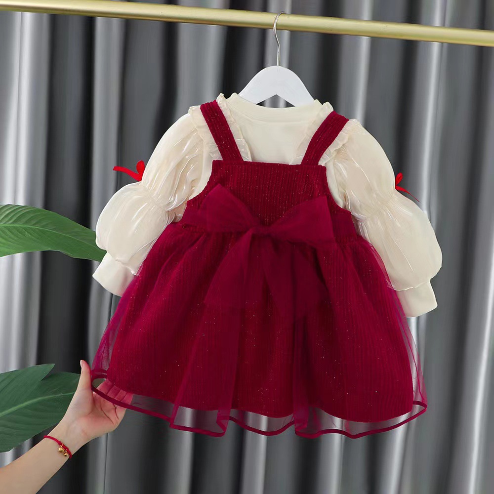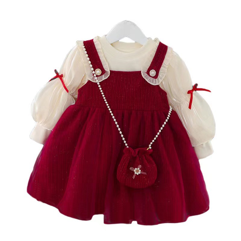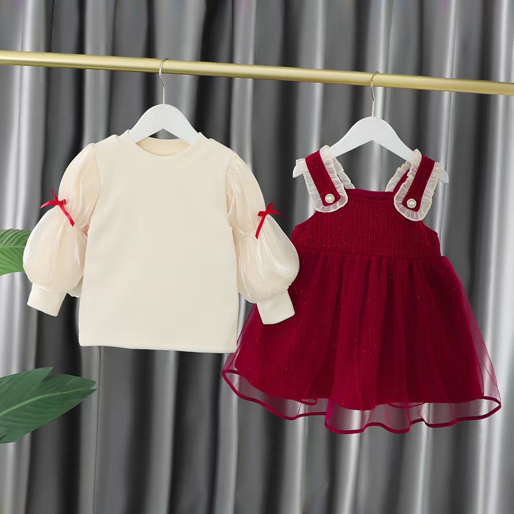 1580 children's clothing wholesale girls bubble sleeve suspender skirt two-piece set to send blessing bag bag baby girl dress