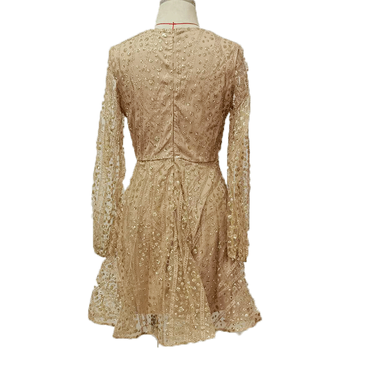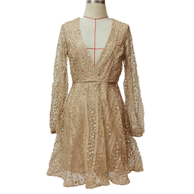 2021 Cross-Border Women's New European and American Deep V Long-Sleeved Dress Wedding Dress Bridesmaid Sequined Pure Color Evening Dress