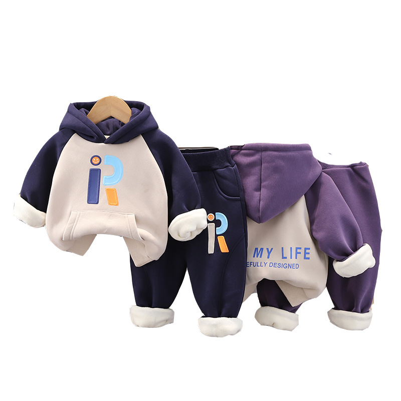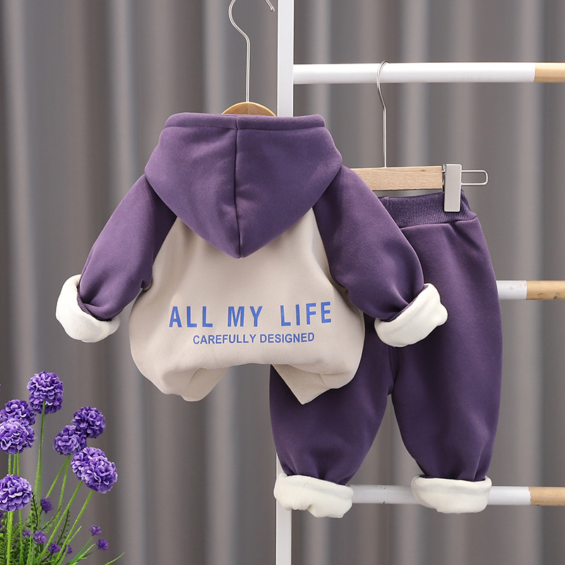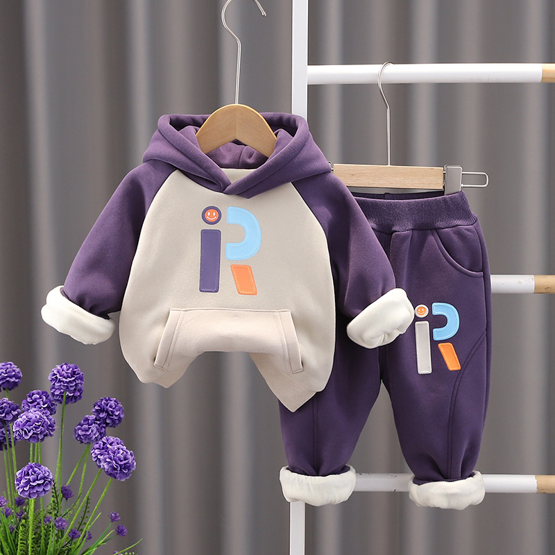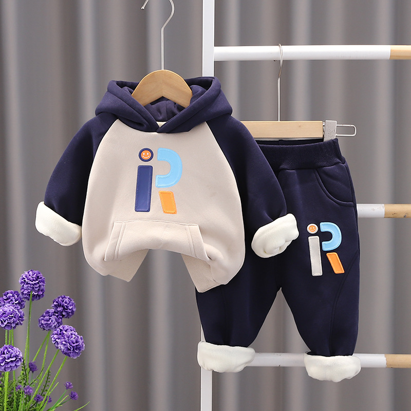 2022 Boy's Winter Suit Korean Style Thickened Hoodie Casual Boy's Fashionable Cotton Two-piece Set
