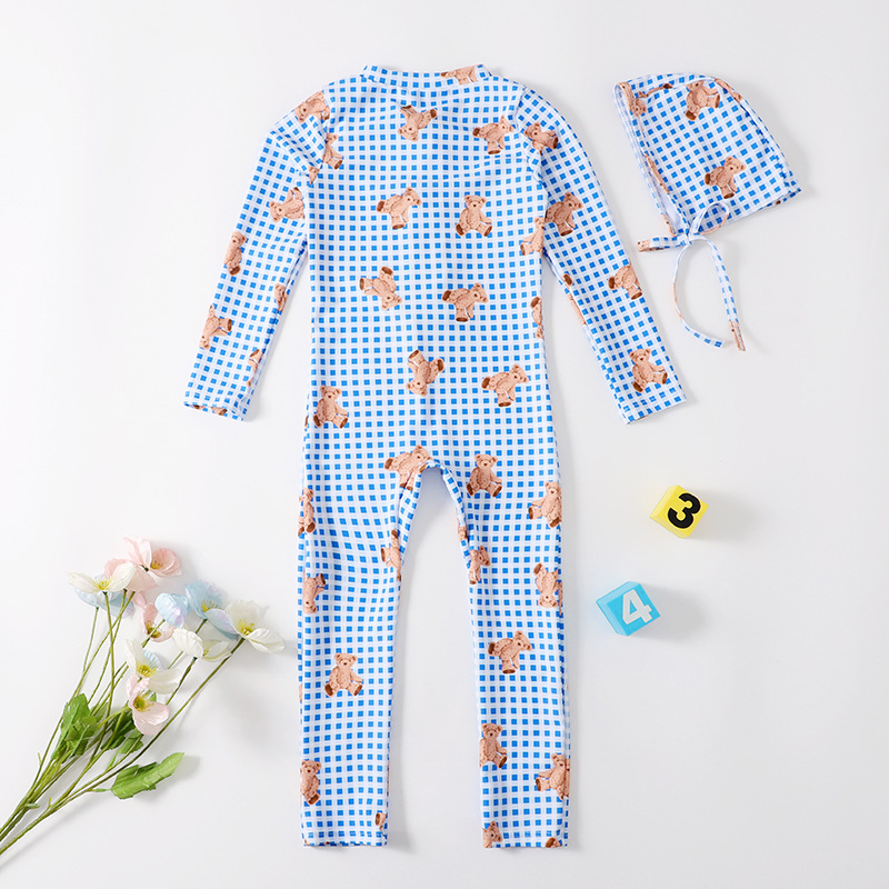 2022 children's swimsuit long sleeve trousers cute children's swimsuit female a generation of hair cartoon bear cute jumpsuit