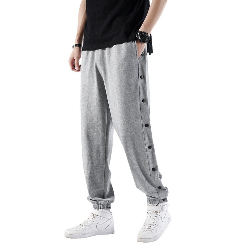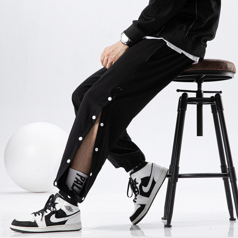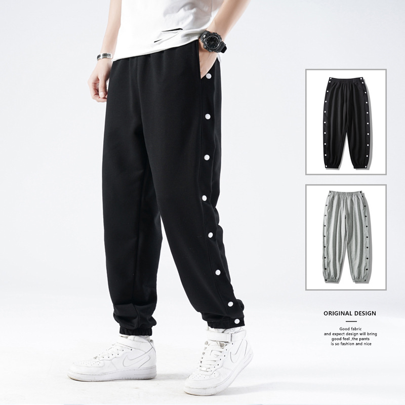 2023 breasted sports pants men's full open button loose fashionable ankle-tied autumn and winter sweatpants side open training basketball long