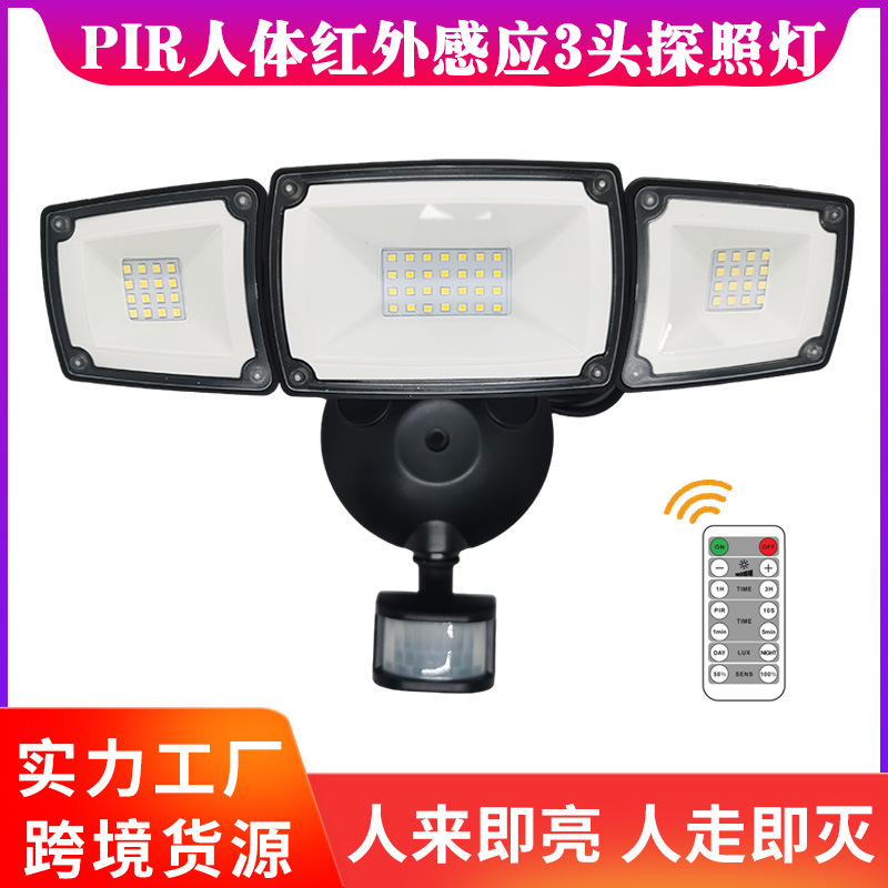 2023 Cross-border New TZD42PIR Floodlight Human Body Infrared Sensor 3 Garage Lights Searchlight