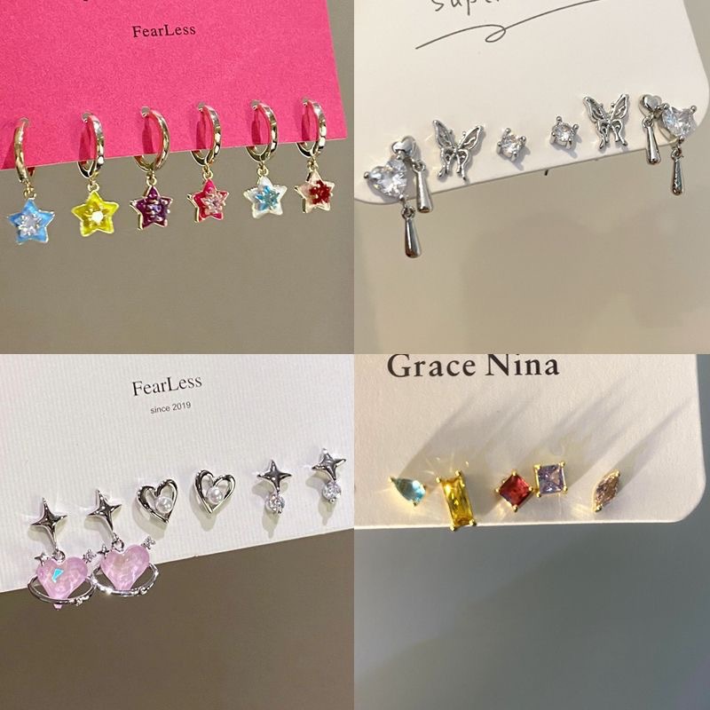 2023 New Fashion Summer Dopamine Star Earrings Six-piece Set Simple Niche Design Sense Exquisite Small Ear Buckle
