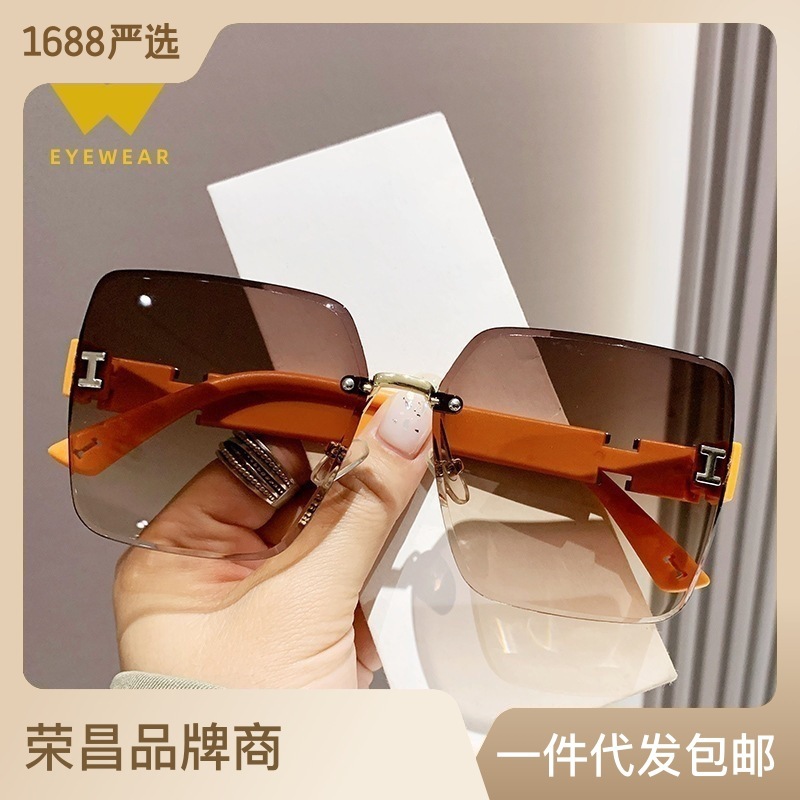 2023 new frameless two-color gradient High sense women's fashion driving sunglasses fashion sunglasses wholesale factory