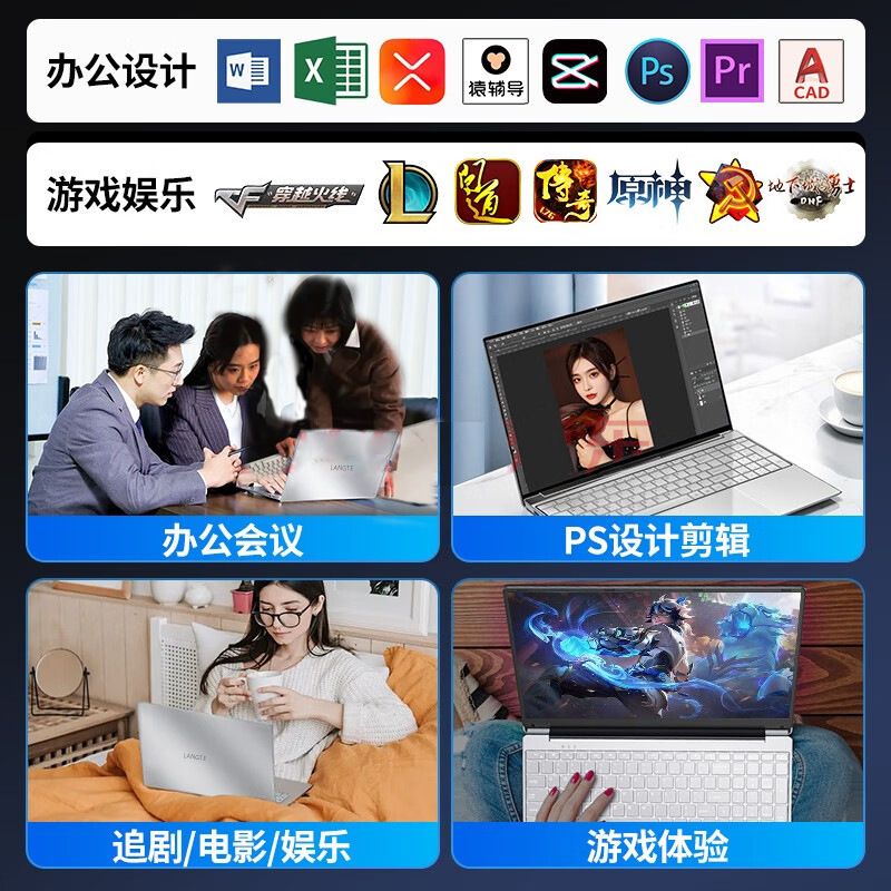 2023 Portable Wireless Ultra-Thin Laptop for Students, Designers, Gaming, Lightweight 2.5K Screen Laptop
