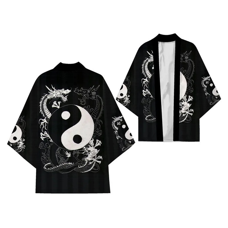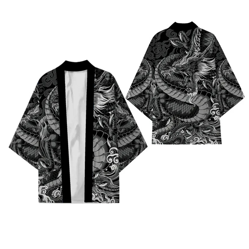 2023 Summer Chinese Style Kimono 3D Ukiyo-e Dragon Pattern Digital Printing TrenDy Cloak Haori Kimono CarDigan