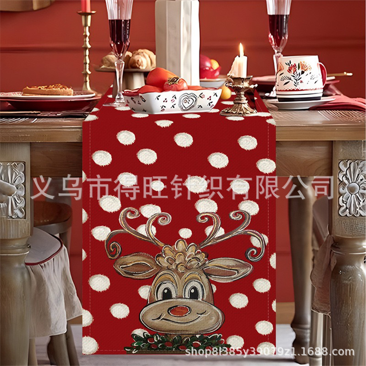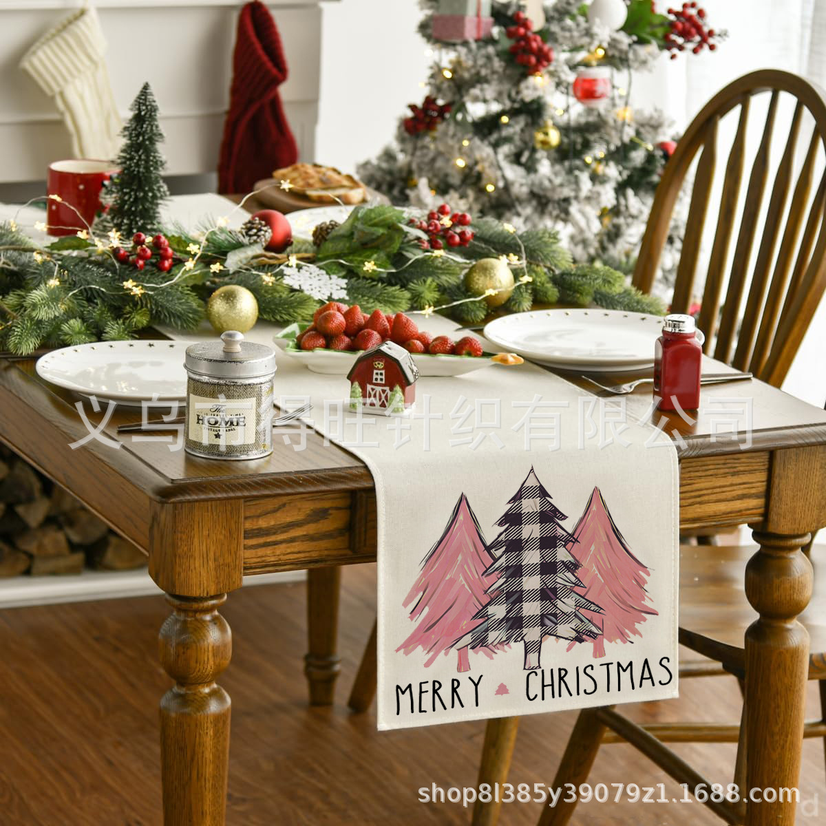 2023 Winter New Christmas Table Flag Amazon Hot Sale Christmas Tree Santa Claus Linen Print Family Table