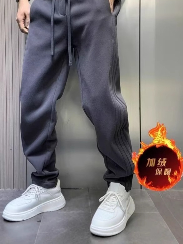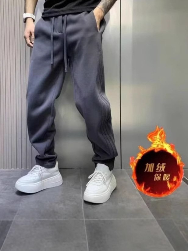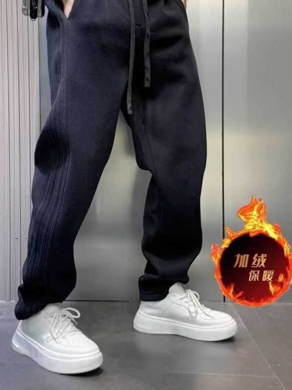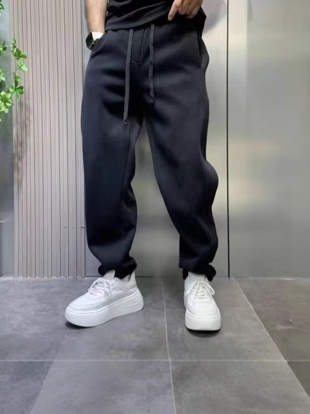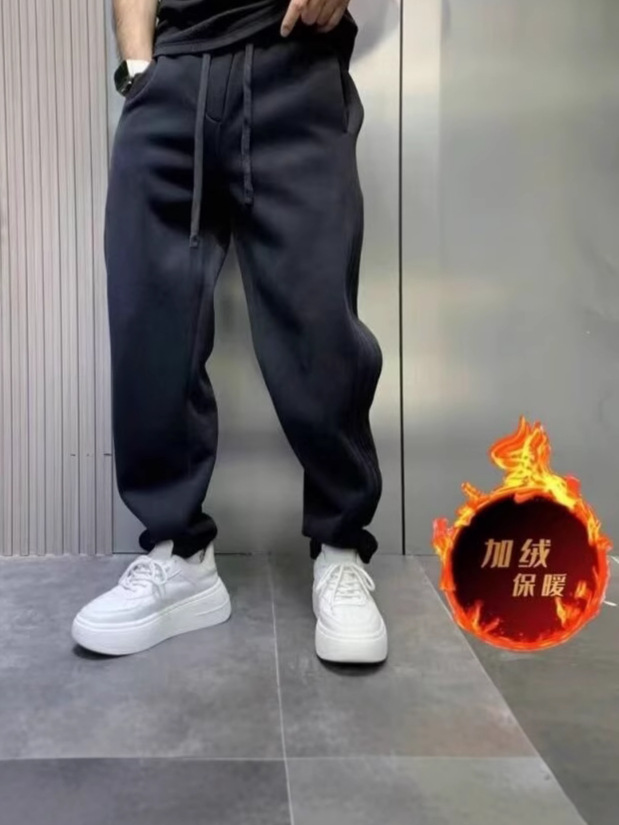 2024 Autumn and Winter New Fleece-Lent Pants Men's Sports Pants Fashionable Loose Straight Solid Color Casual Haren Pants for Men