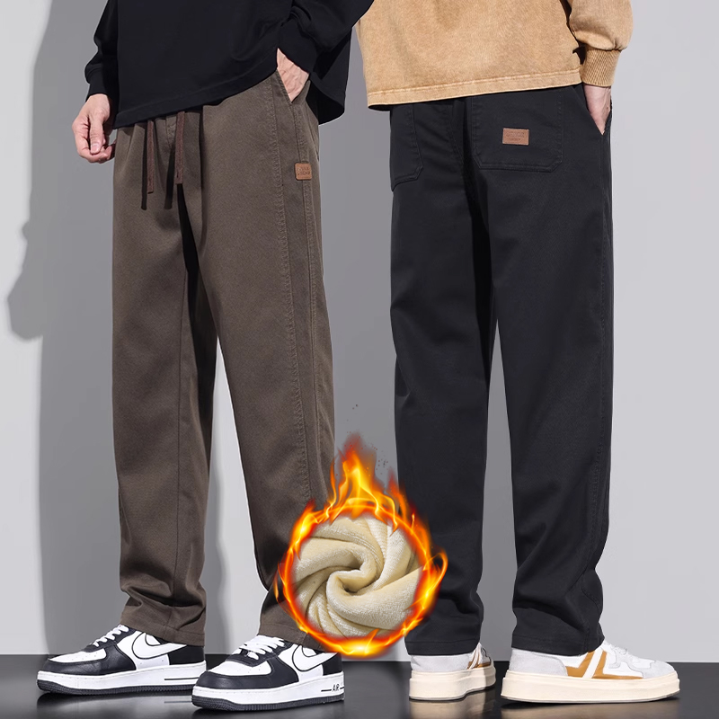 2024 Autumn and Winter New fleece-lined Thickened Casual Pants Men's American Straight Tooling Warm Long Pants Men's Trendy