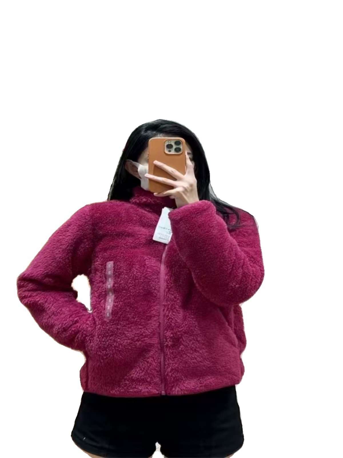 2024 long fleece fleece plush jacket stand collar warm jacket zipper cardigan 439138 428330