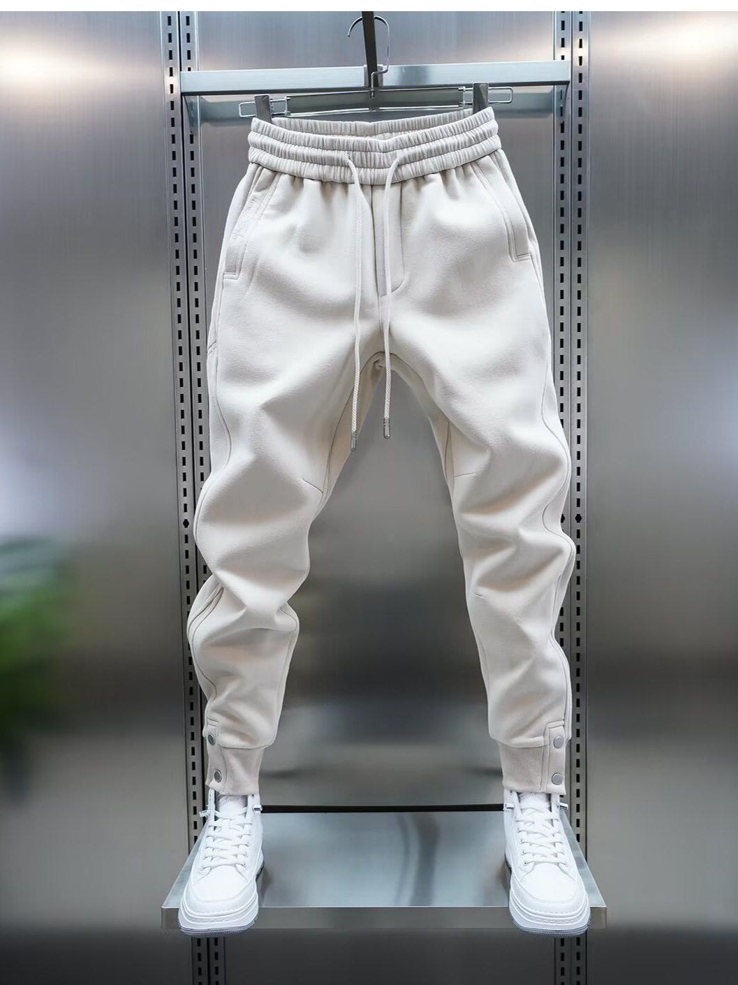 2024 Men's New Autumn and Winter Fashionable All-match Leg-toe Casual Pants Solid Color Elastic Waist Leg Sports Guard