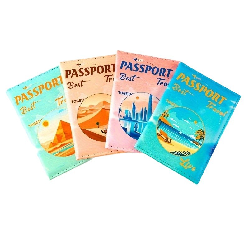 2024 New Cartoon Landscape Printing Cover Passbook Bag Couple Travel Passbook Holder Women's ID Protection Cover