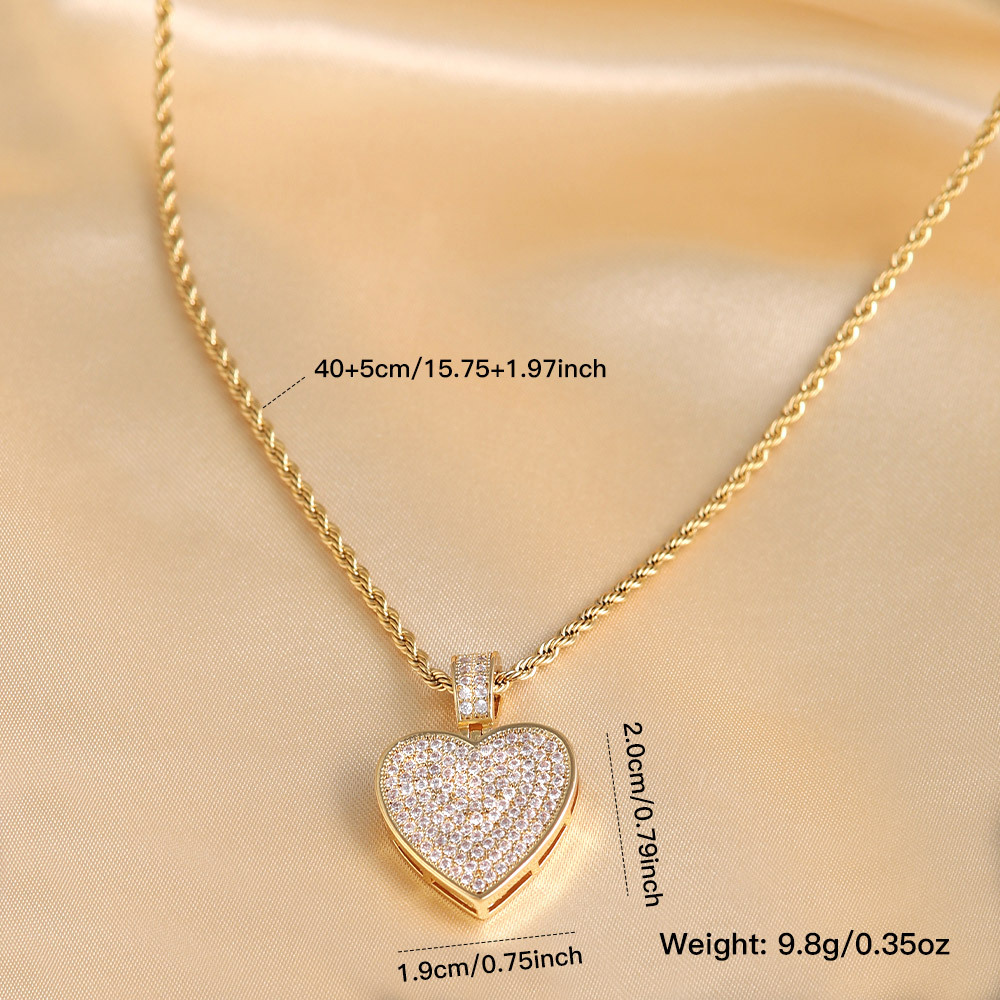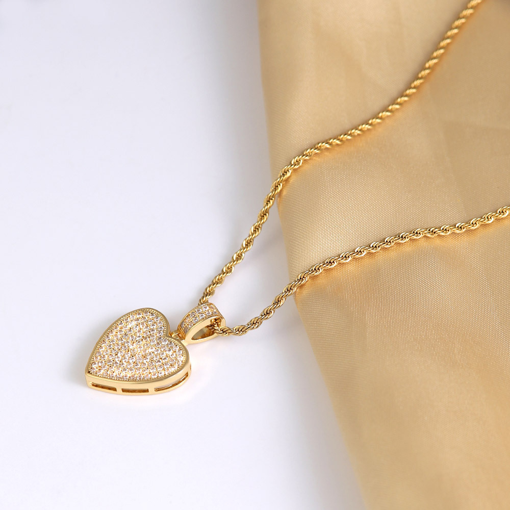2024 New Export Hip-Hop Full Diamond Heart Pendant Brass Electroplated Zircon Heart-Shaped Necklace for Men and Women