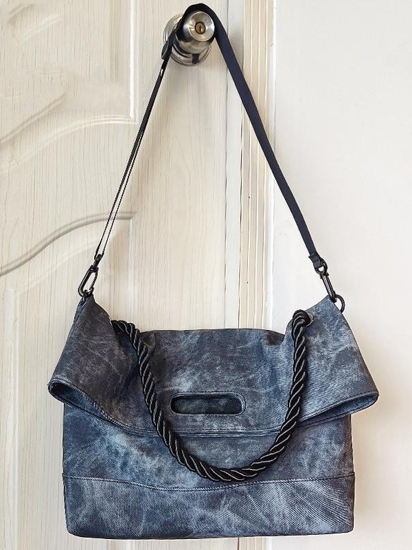 2024 New Imitation Denim Soft Leather Tote Bag Women's A4 Class Commuting Large Capacity Crossbody Bag Commuting Large Shoulder Bag