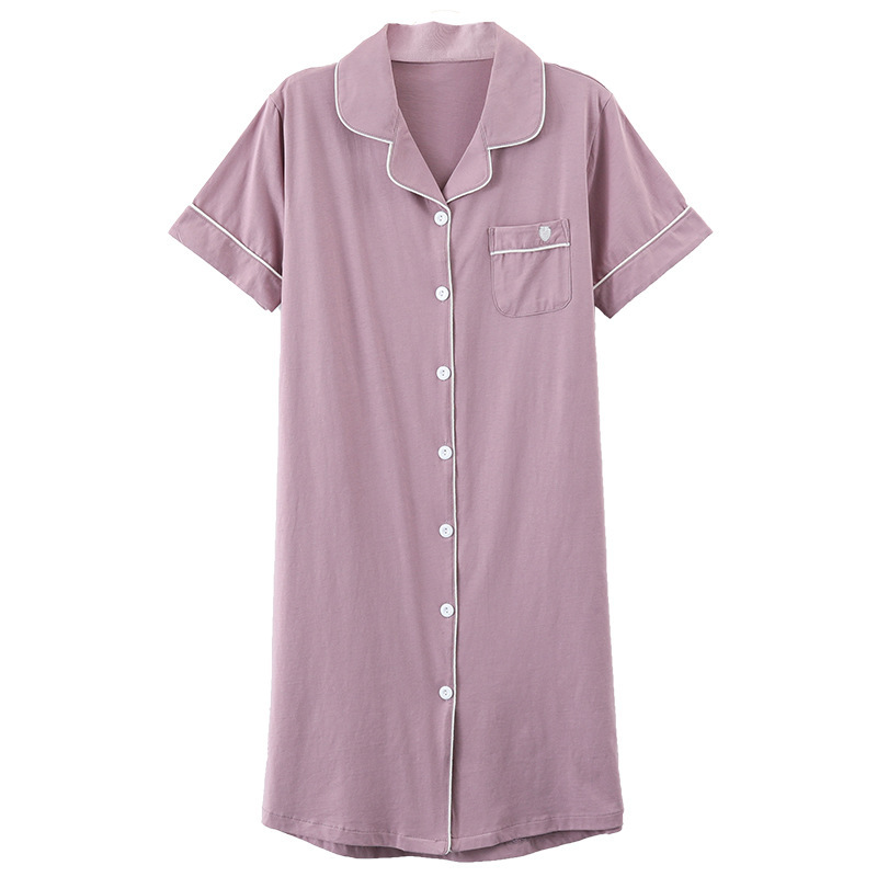 2024 New Lapel Nightdress Women's Summer Short-sleeved Front Buckle Thin Shirt Dress Mid-length Dress Women's Nightdress