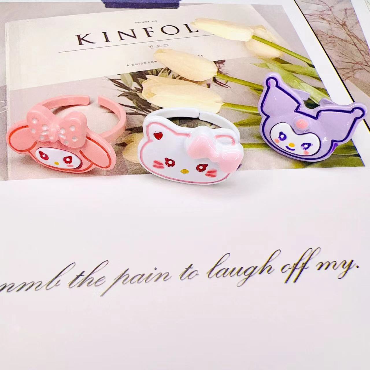 2024 New Sanrio Cute Ring Fashion Simple Accessories Personalized Cartoon Oil Drop Diamond Ring New Hot Sale