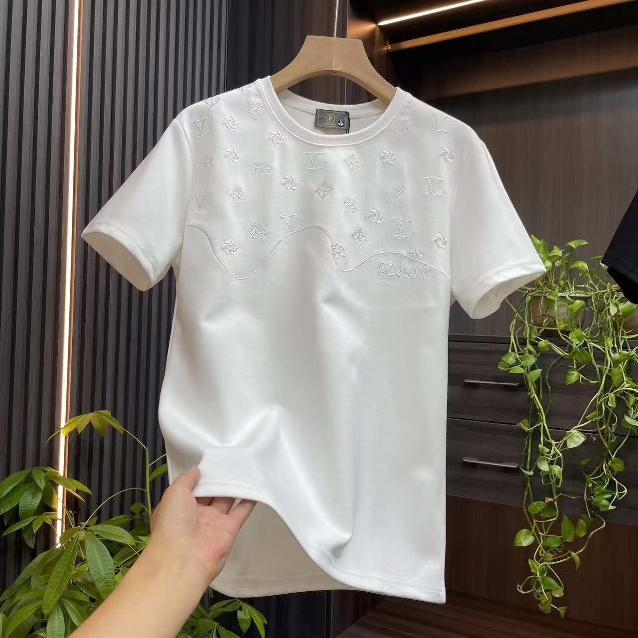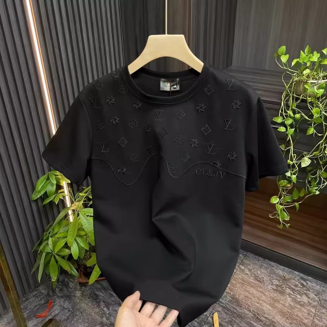 2024 Summer New Men's Short-sleeved Embroidered Cotton T-shirt Wholesale Slim-fit Casual Fighting Goods Light Luxury Half-sleeved T-shirt
