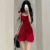2024 Summer Women's Sexy Strap Red Dress Ladies Mini Dresses