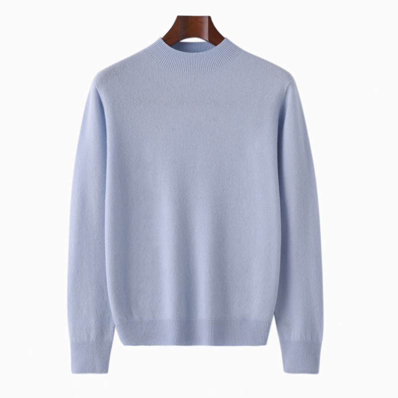 2025 100% Wool Sweater for Men, Ready-To-Wear, Half-High Collar, Long Sleeves, Solid Color Pullover, Seamless Base Layer Sweater