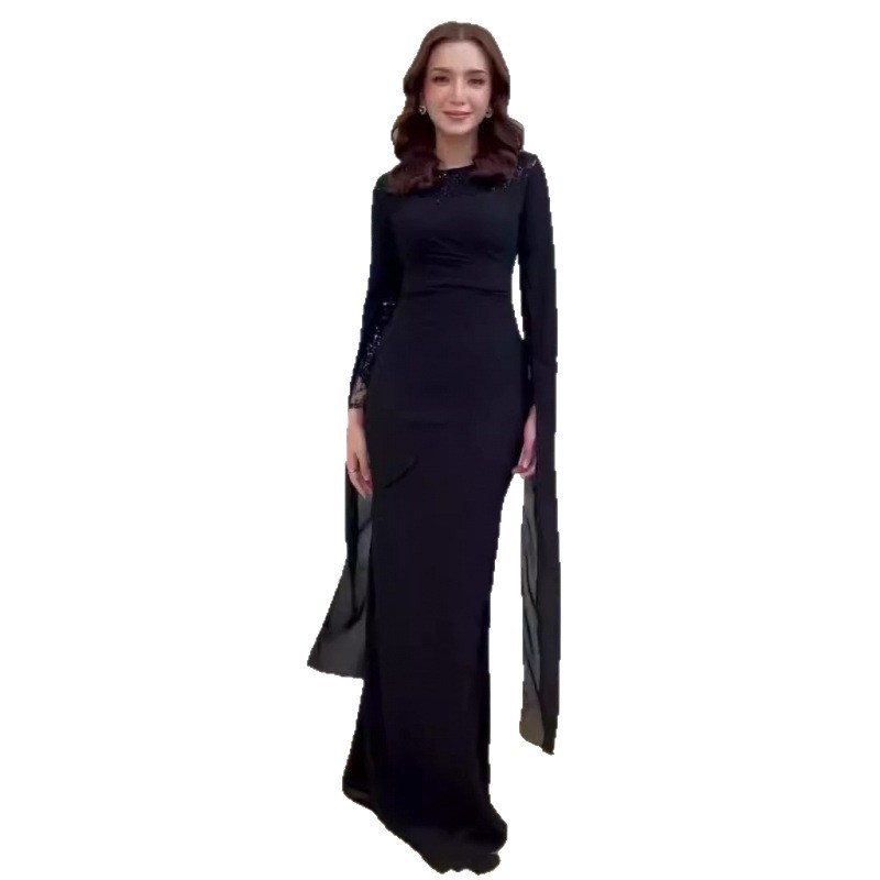 2025 Amazon Foreign Trade Women's Clothing Middle Eastern Fashion Dress Skirt Sequin Stitching Asymmetrical Waist Design Dress