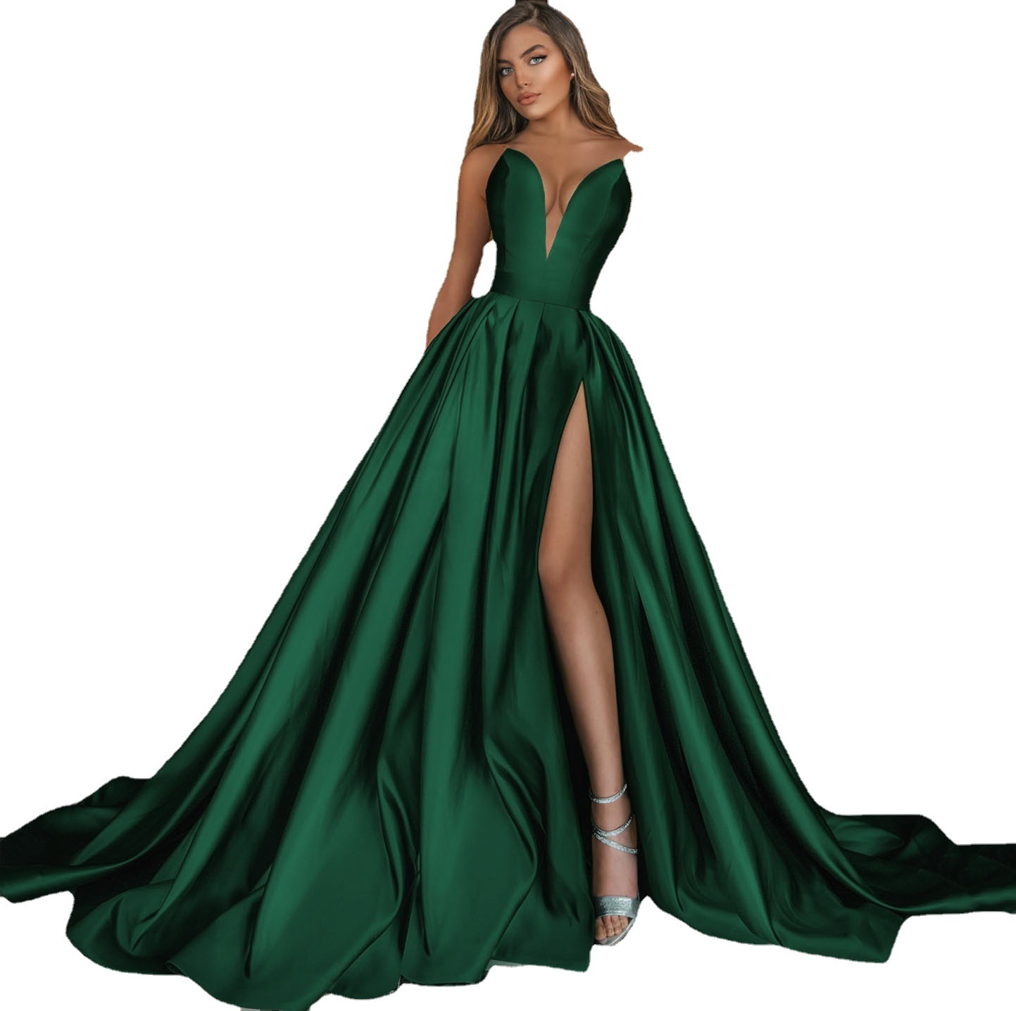 2025 Autum and Winter New European and American Cross-Border Amazon Export Women's Clothing Sexy Deep V Slit Long Skirt Wedding Dress