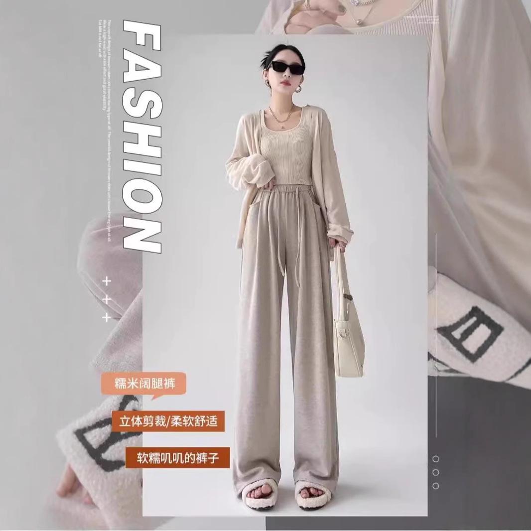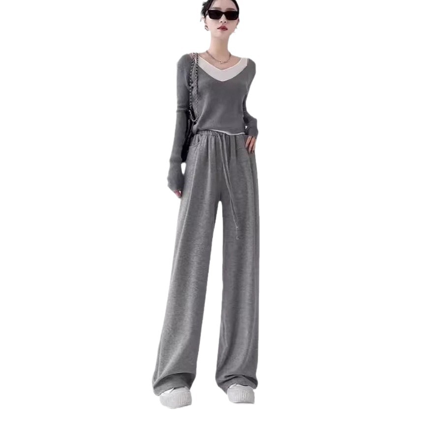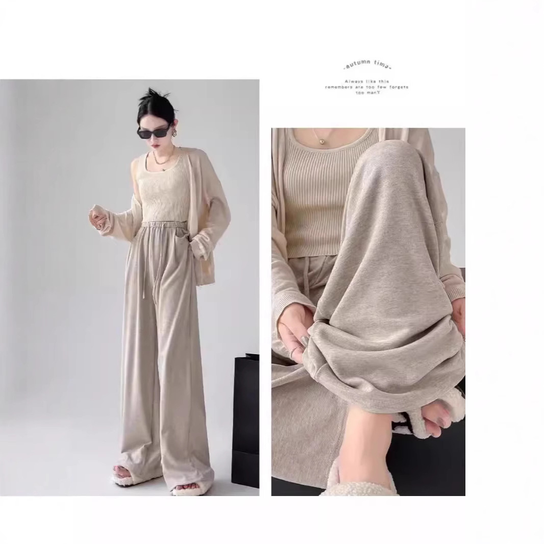 2025 Autumn/Winter High-Waisted Wide-Leg Pants, Cashmere Slim-Fit Versatile Floor-Length Pants, Drawstring Casual Pants for Women, Lazy Style
