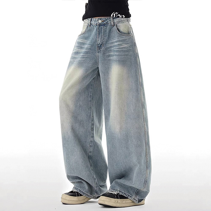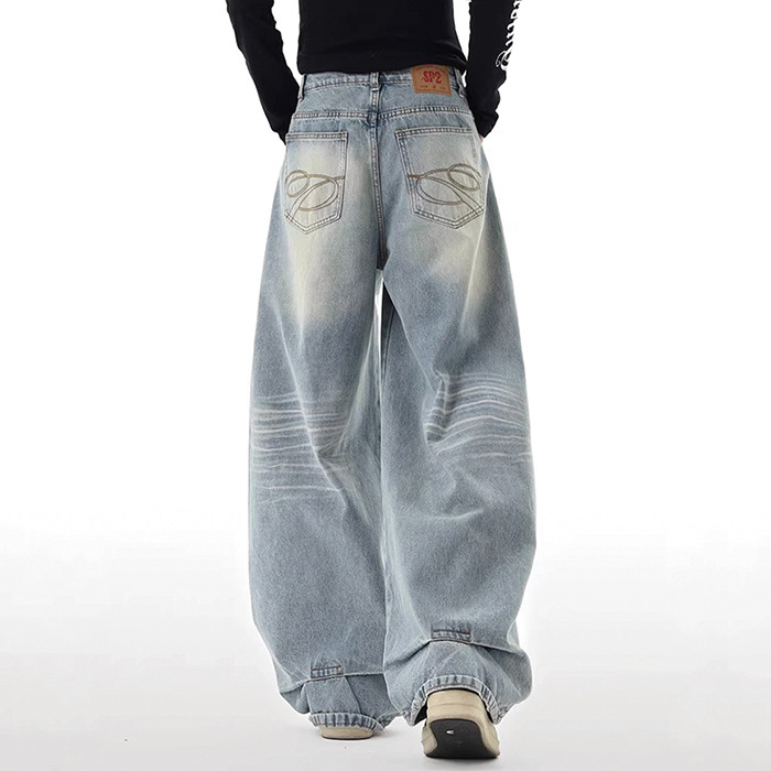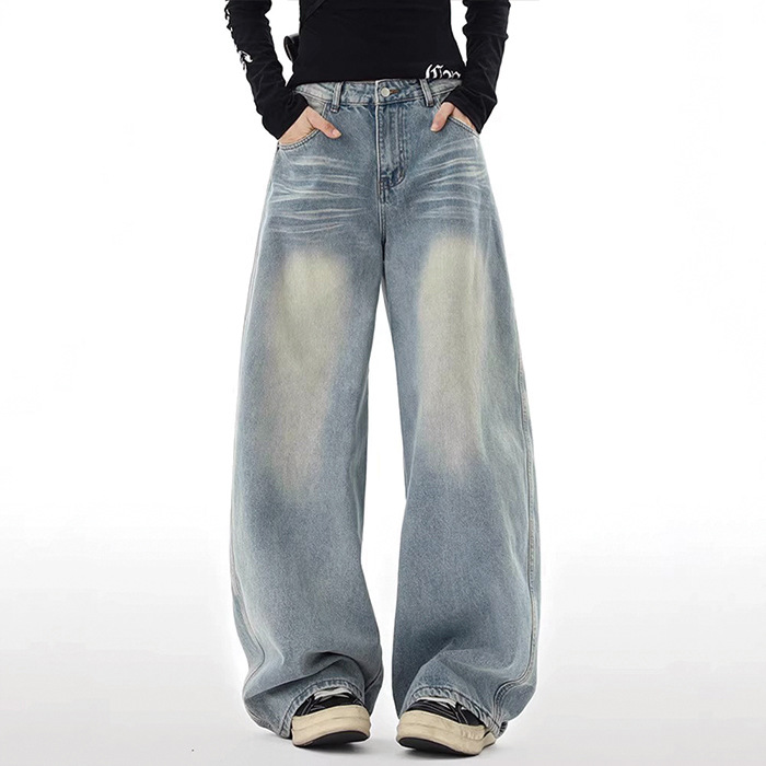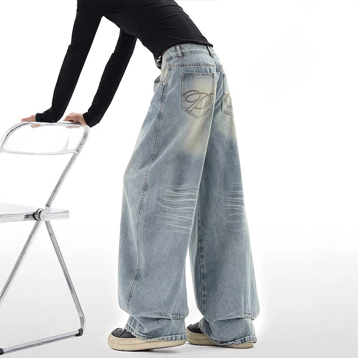 2025 Autumn/Winter New Blue Wide-Leg Jeans for Women Versatile Embroidered Loose Straight-Leg Pants Casual Plus Size