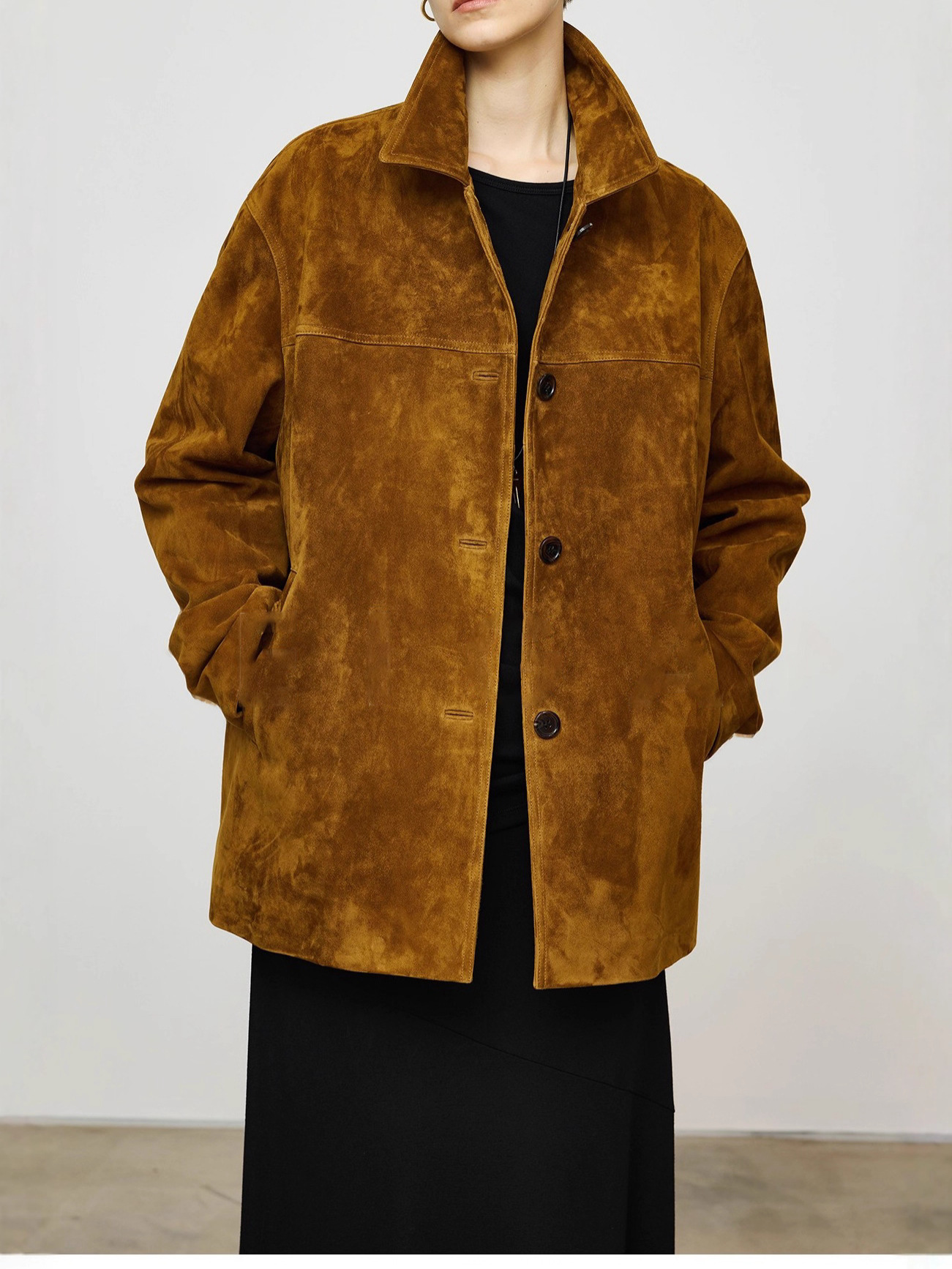 2025 Autumn/Winter New Old Money Style Suede Jacket Women's Jacket Turn-Down Collar Loose Coat
