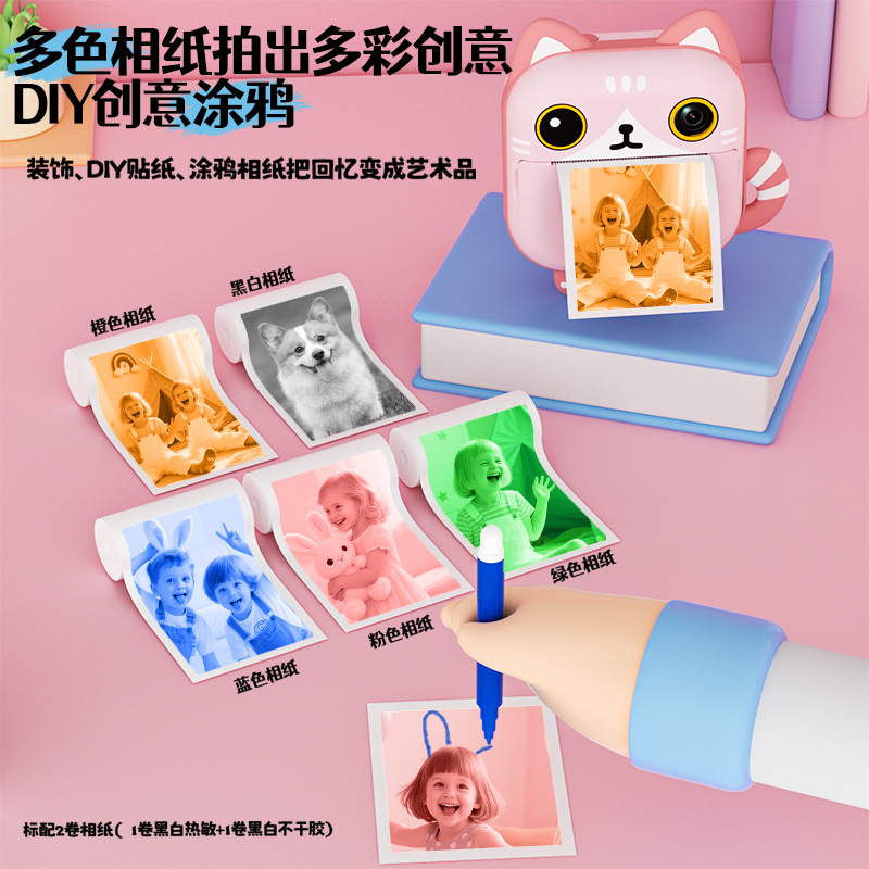 2025 Cartoon Mini Printable Children's Camera Polaroid Cute and Adorable Student Digital High-Definition Camera