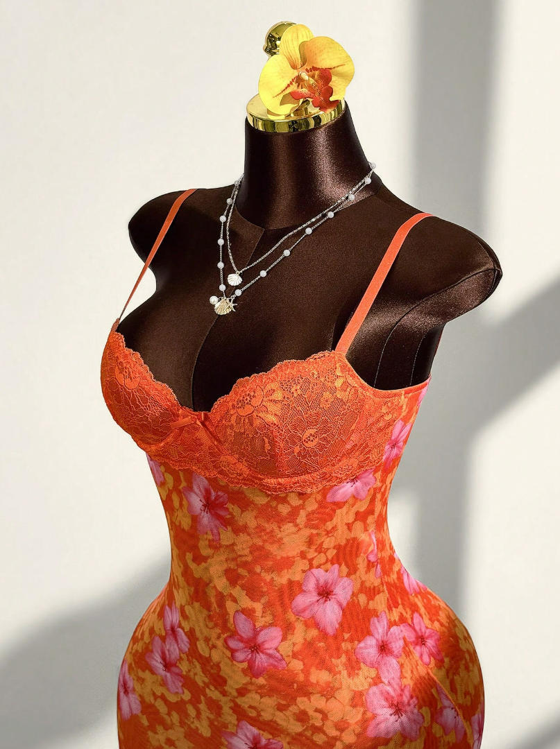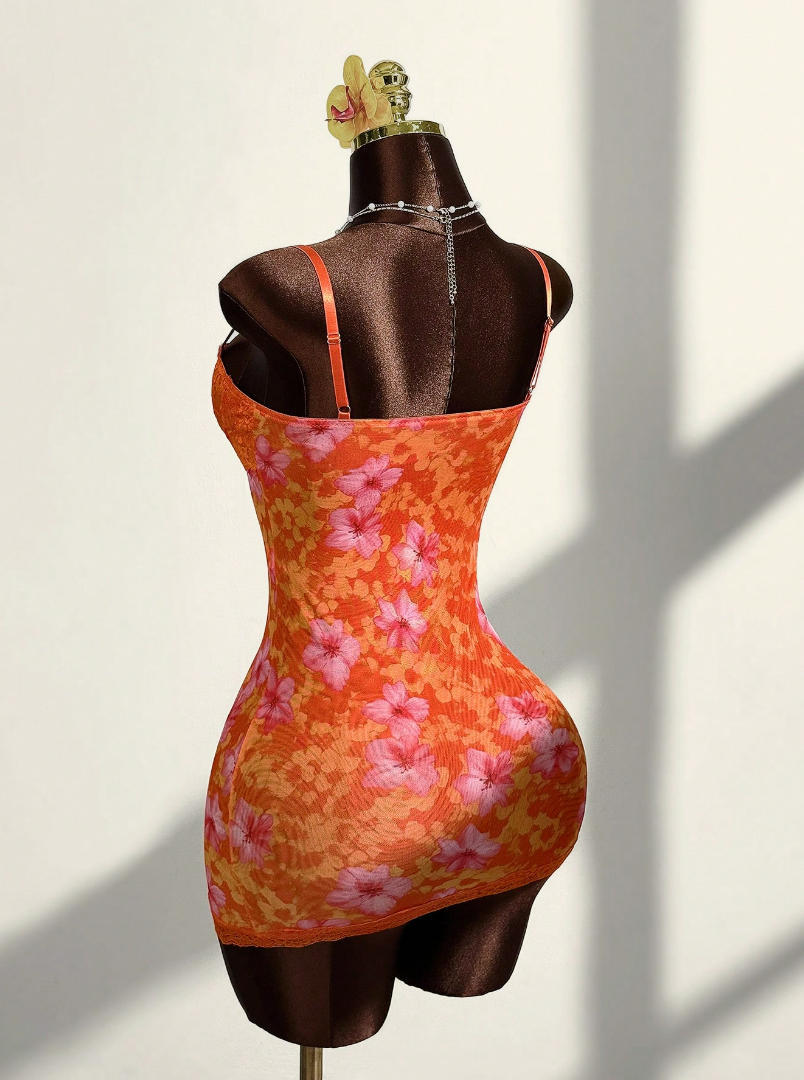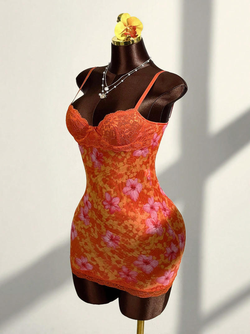 2025 Cross-Border Amazon Sexy Lace Suspender Skirt Waist Retro Print Backless Floral Hip Skirt Fragmented Dress
