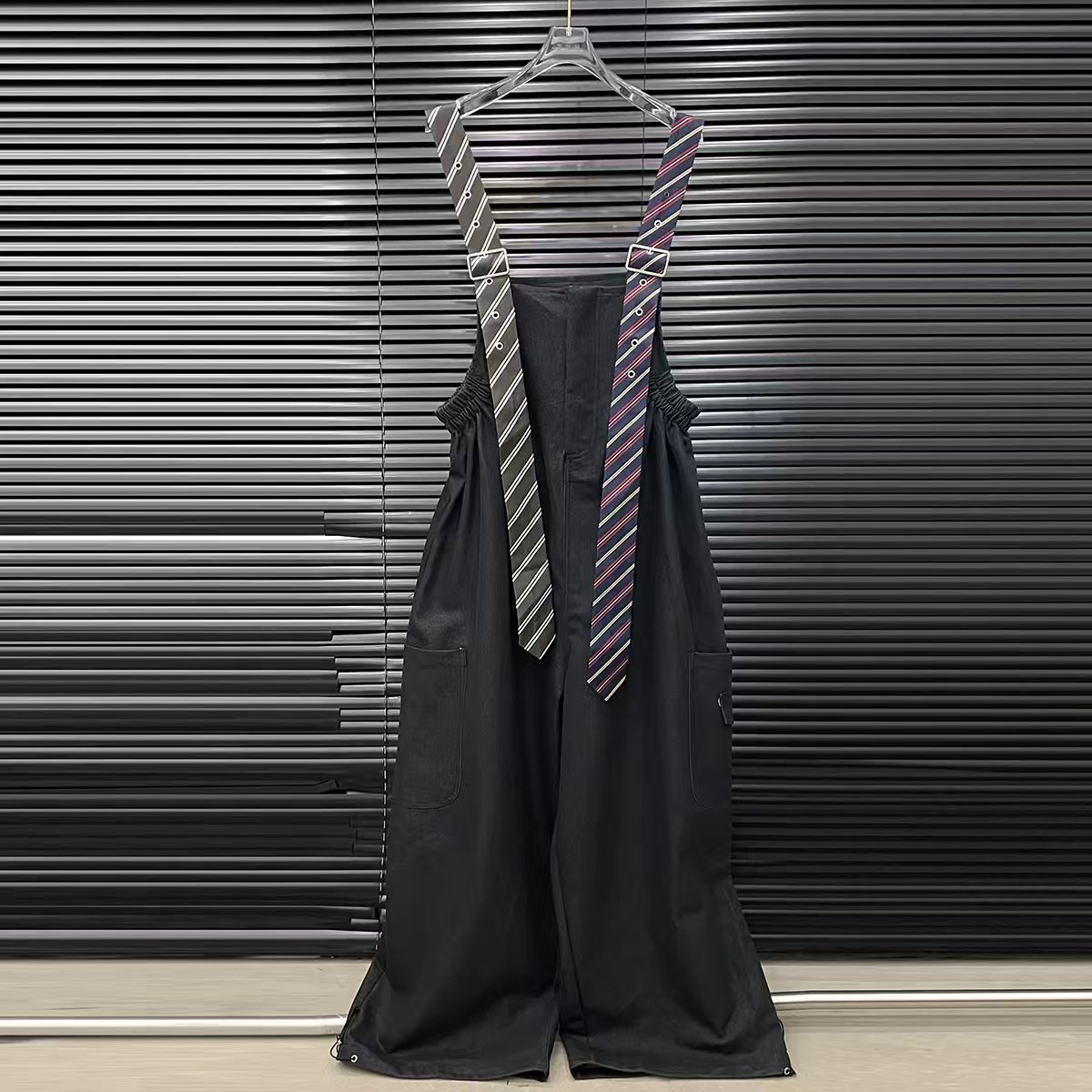 2025 Early Autumn New Tie-Decorated Overalls for Tall Women, Designer Cargo Pants, Wide-Leg Jumpsuit