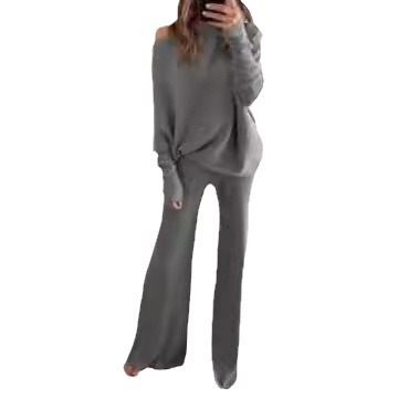 2025 European and American New Women's Clothing Amazon Aliexpress Spring Casual Solid Color Off-Shoulder Women's Knit Set