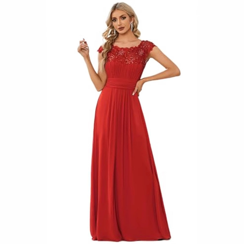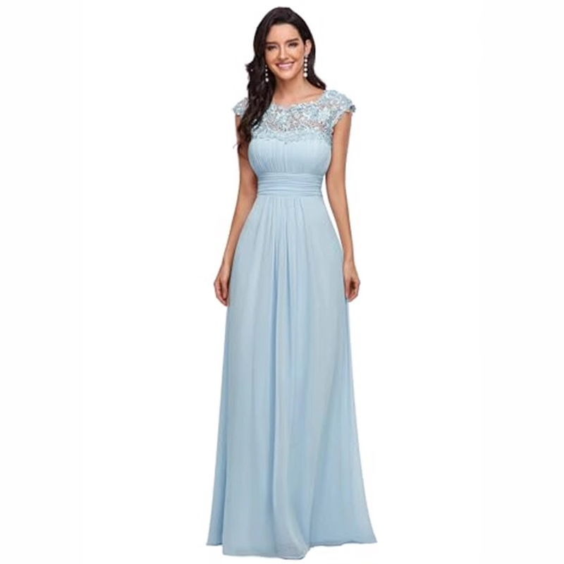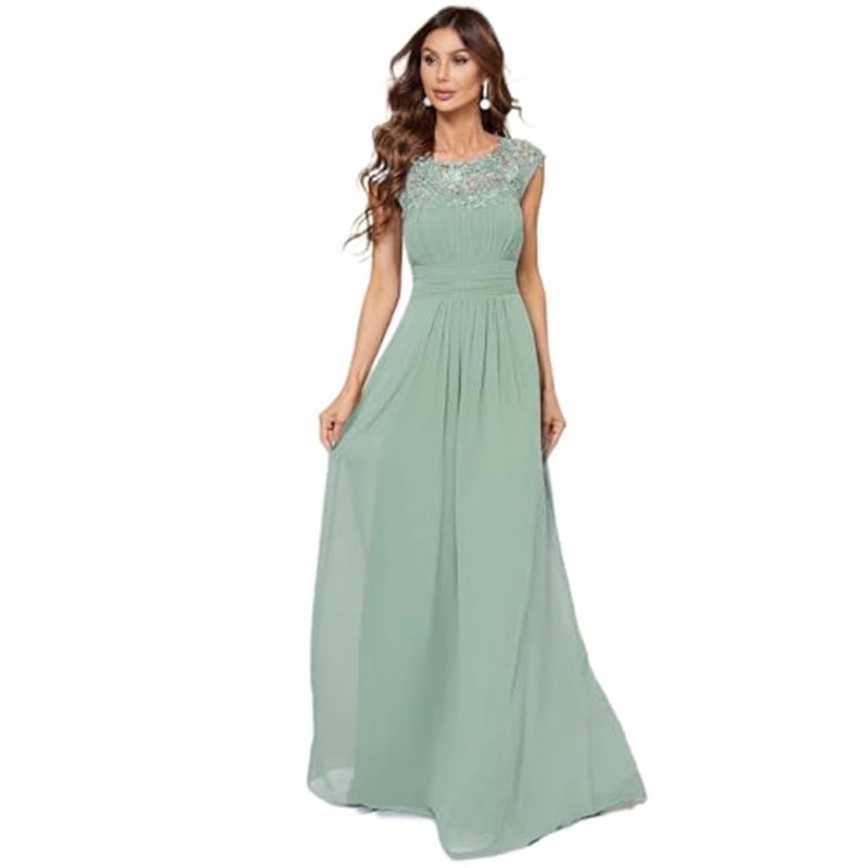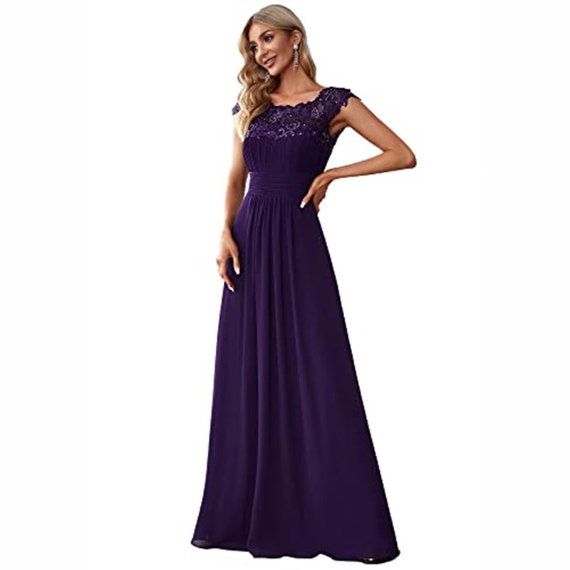 2025 New Amazon Bridesmaid Dress European and American Women's Cap Sleeve Chiffon Collar Pleated Lace Formal Ball Gown
