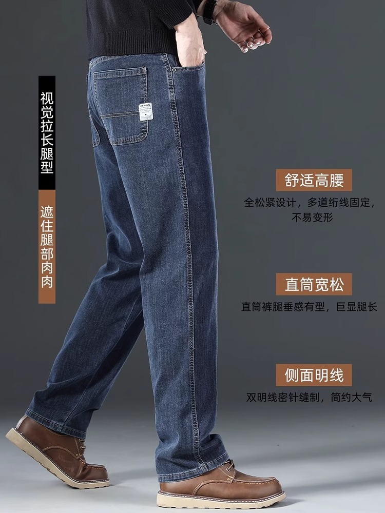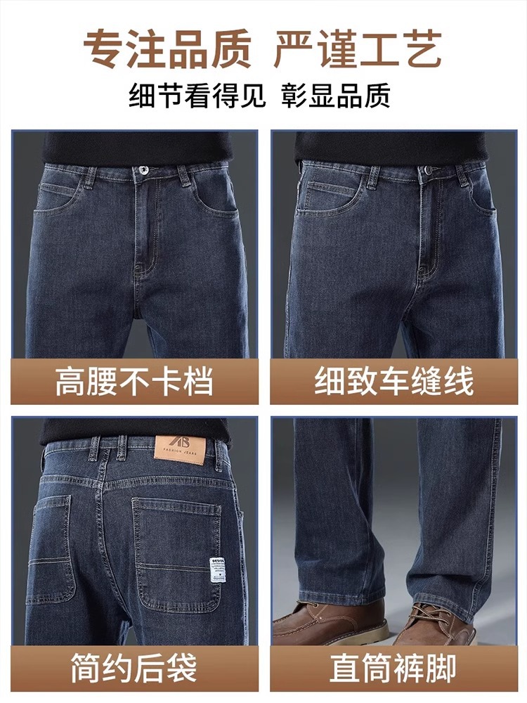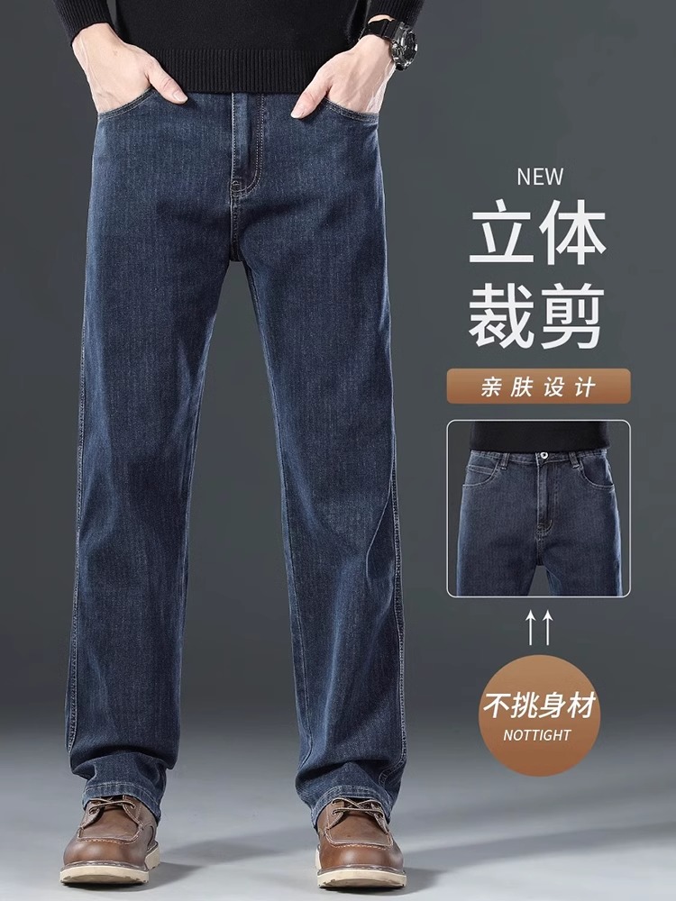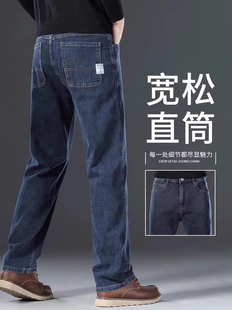 2025 New Autumn and Winter Men's Jeans, Loose Business Straight-Leg Wide-Leg, Plus-Size Casual Pants for Middle-Aged Men