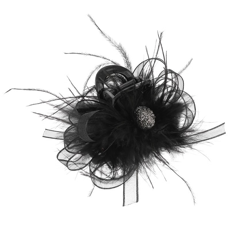 2025 New Bow Black Feather Clip Women's Back Hair Clip High-End Shark Clip Hair Clip