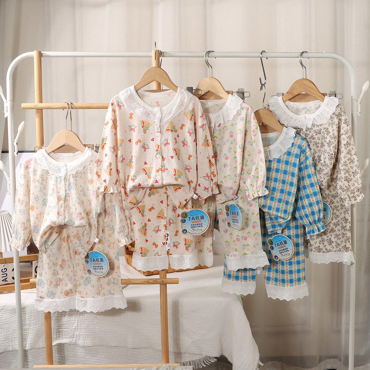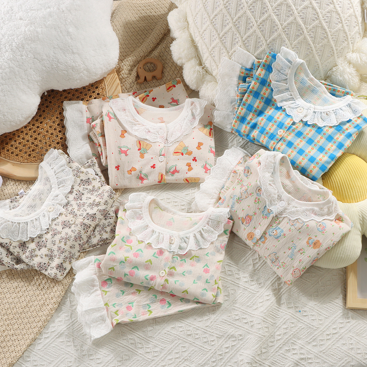 2025 New Children's Stretch Cotton Yarn Baby's Spring and Summer Home Clothes suit Korean Style Lace Fashion Children's Women's Treasure Air-conditioning Clothes