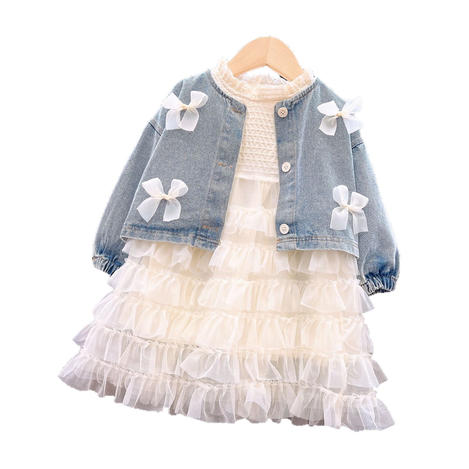 2025 New Girls Spring Dress Suit Girls Denim Jacket Spring Style Baby Girl Princess Skirt