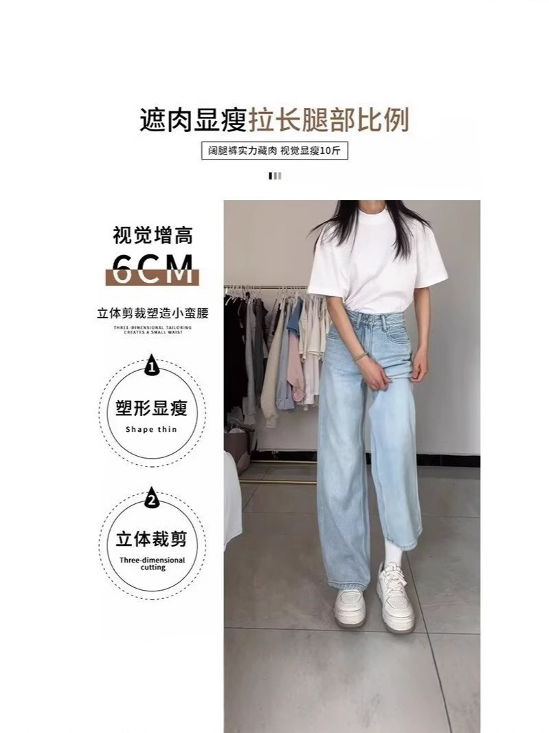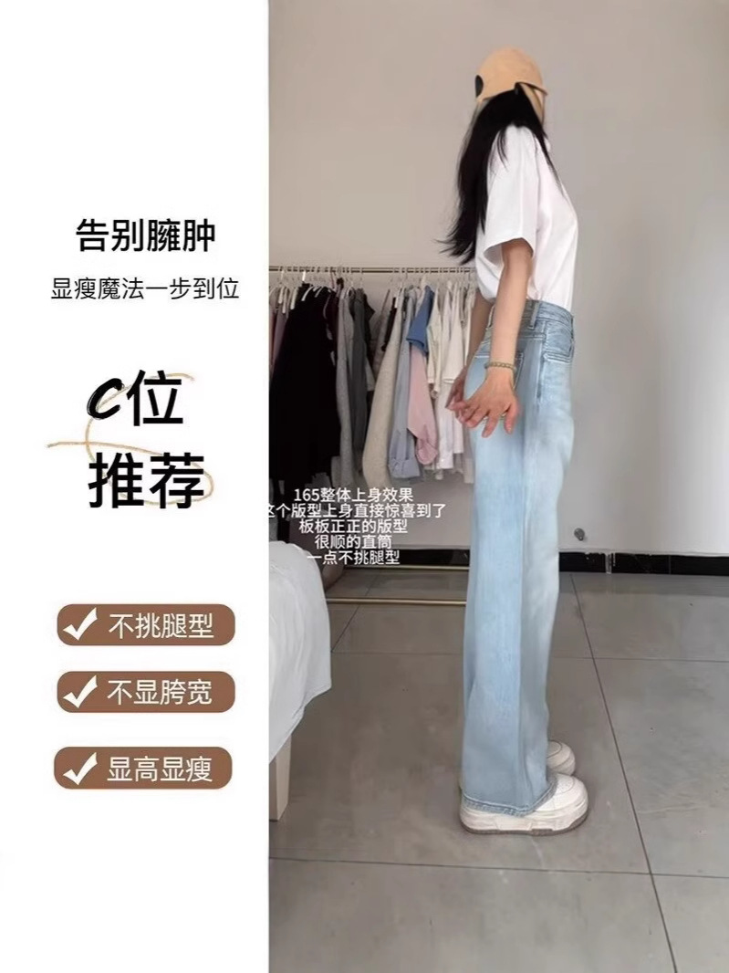 2025 New High Sense Fashion Light Color Straight Jeans Women's High Waist Slimming Narrow Pants
