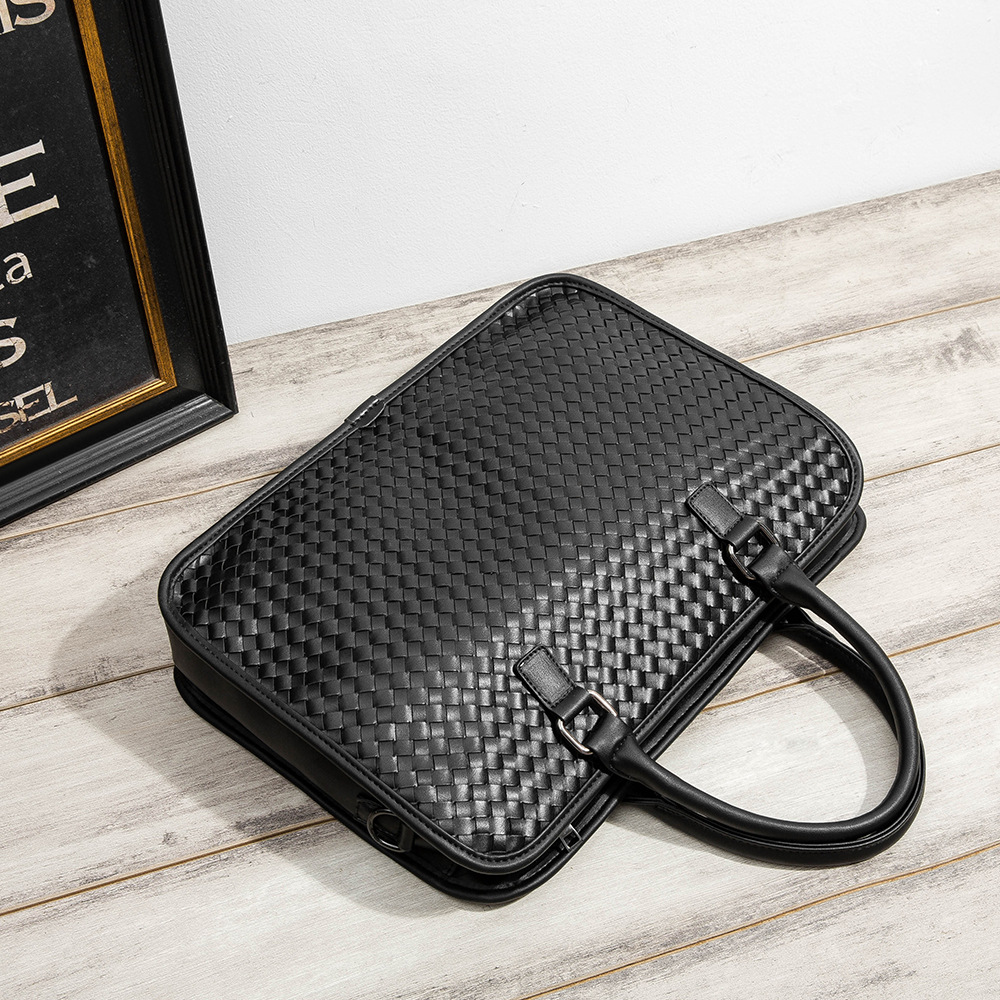 2025 New Men's Handheld Woven Bag Horizontal Business Men's Bag Casual Single Room Diagonal Korean Style Briefcase Casual