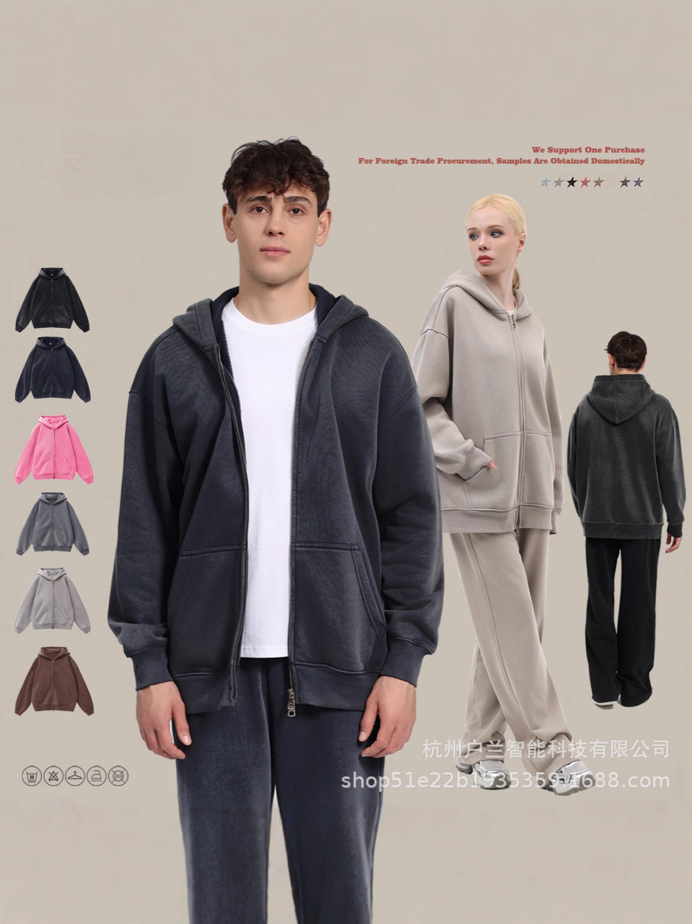 2025 New Men's Sweatshirt with a High-End Feel, Heavyweight Fleece-Lined, Zip-Up Crew Neck, Autumn and Winter Men's Clothing, American Style Couple Hoodie